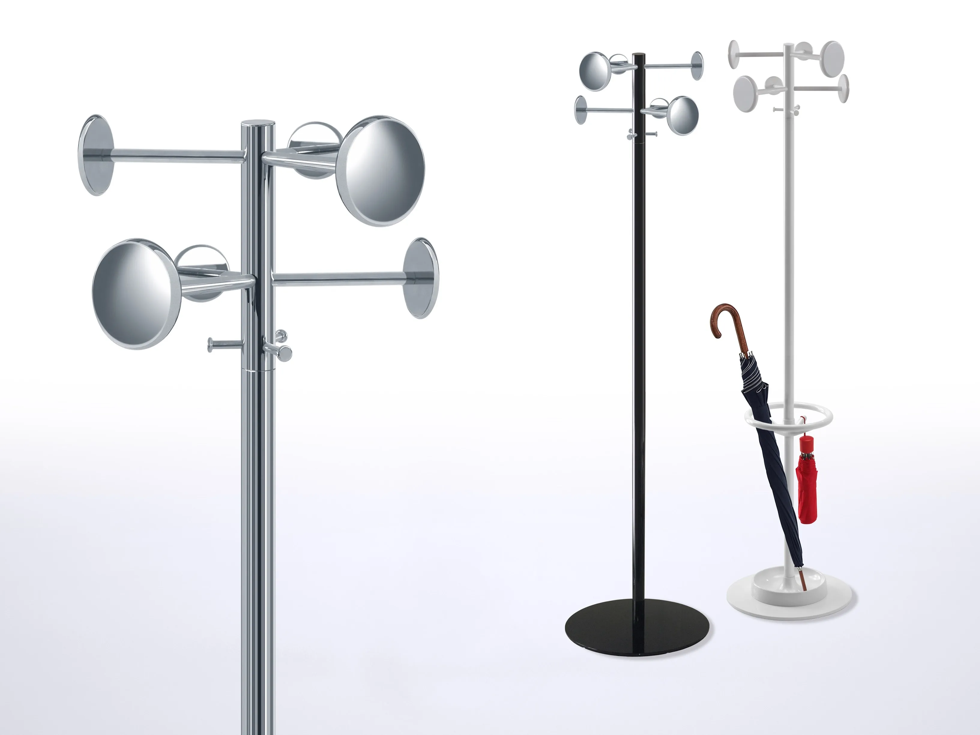 Super Ego родился как вариант Alter Ego, из которых удваивает возможности использования, в результате чего 6 уютных дисков поддержки, тем самым еще больше повышая универсальность оригинальной модели. материалы: головка, стержень и основание из окрашенной стали, или с хромированными деталями, или полностью хромированные. полиэфирная прокладка для пола. дополнительный комплект зонтов из технического полимера.