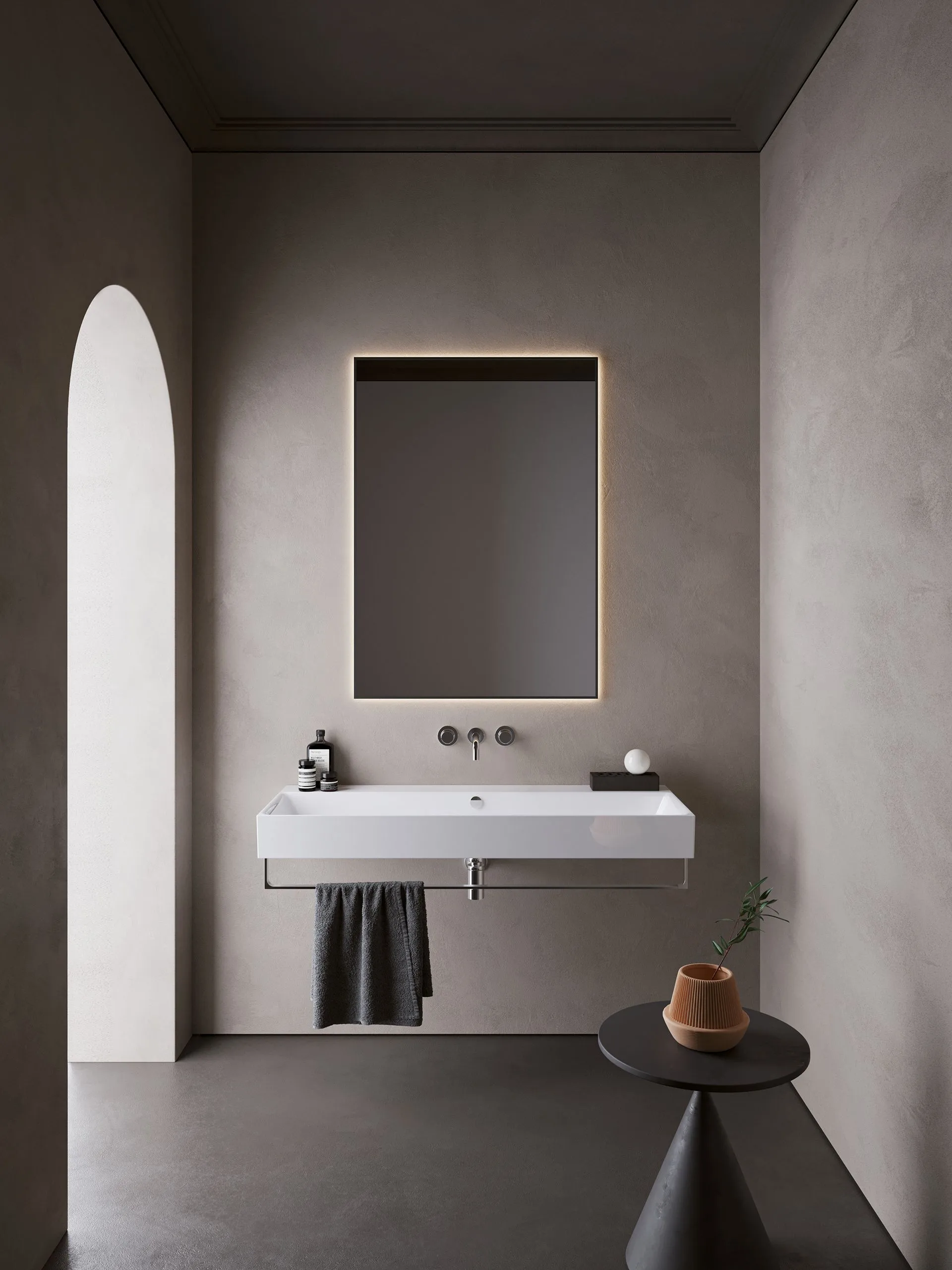 раковины коллекцииPremium характеризуются безошибочной четырехугольной геометрической матрицей, представляющей конкретное выражение каталонского бренда, отличающегося функциональностью и вниманием к деталям. Рестайлинг коллекции, производной от Premium уменьшает толщину и придает характер, реализуя мягкую поверхность, смягчая графический знак таза. Все умывальники могут быть установлены в трех различных режимах: подвесные, поддерживающие и подвижные и могут быть интегрированы со специальными вешалками для полотенец.