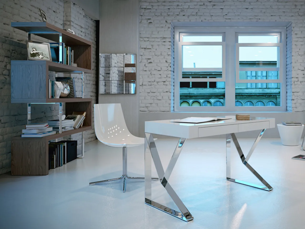 * стиль: этот офисный стол добавляет Moderna в офис. Его сочетание белого лакированного дерева полированная и хромированная сталь идеально подходит для сочетания с последними тенденциями в декоре.