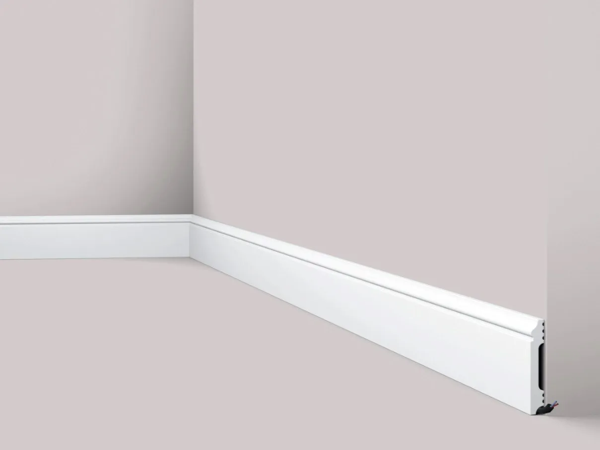 FL1 WALLSTYL® - плинтус из полистирола. Плинтус FL1 прост и обеспечивает адаптацию к различным стилям мебели. Ударопрочный материал защищает от ударов в переполненных помещениях, таких как царапины или пятна на стенах и других поверхностях. Плинтус FL1 также доступен как часть линейки Flex и доступен в двух размерах.