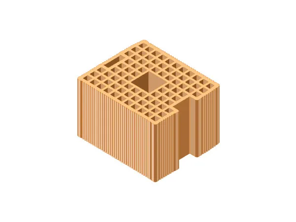 вертикальные отверстия, осветление в древесной муке, идеально подходит для строительства несущей кладки в зонах повышенной сейсмической опасности.