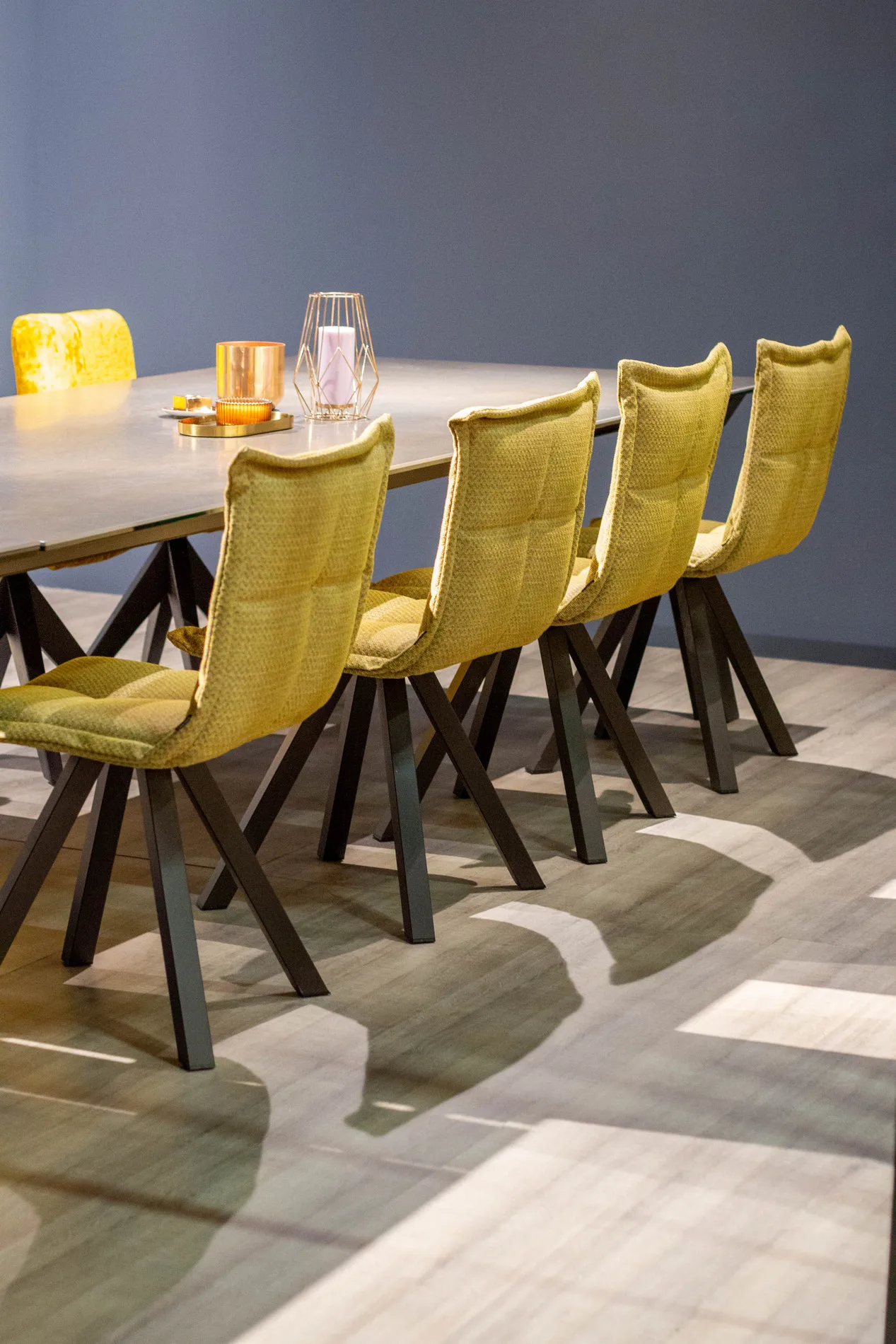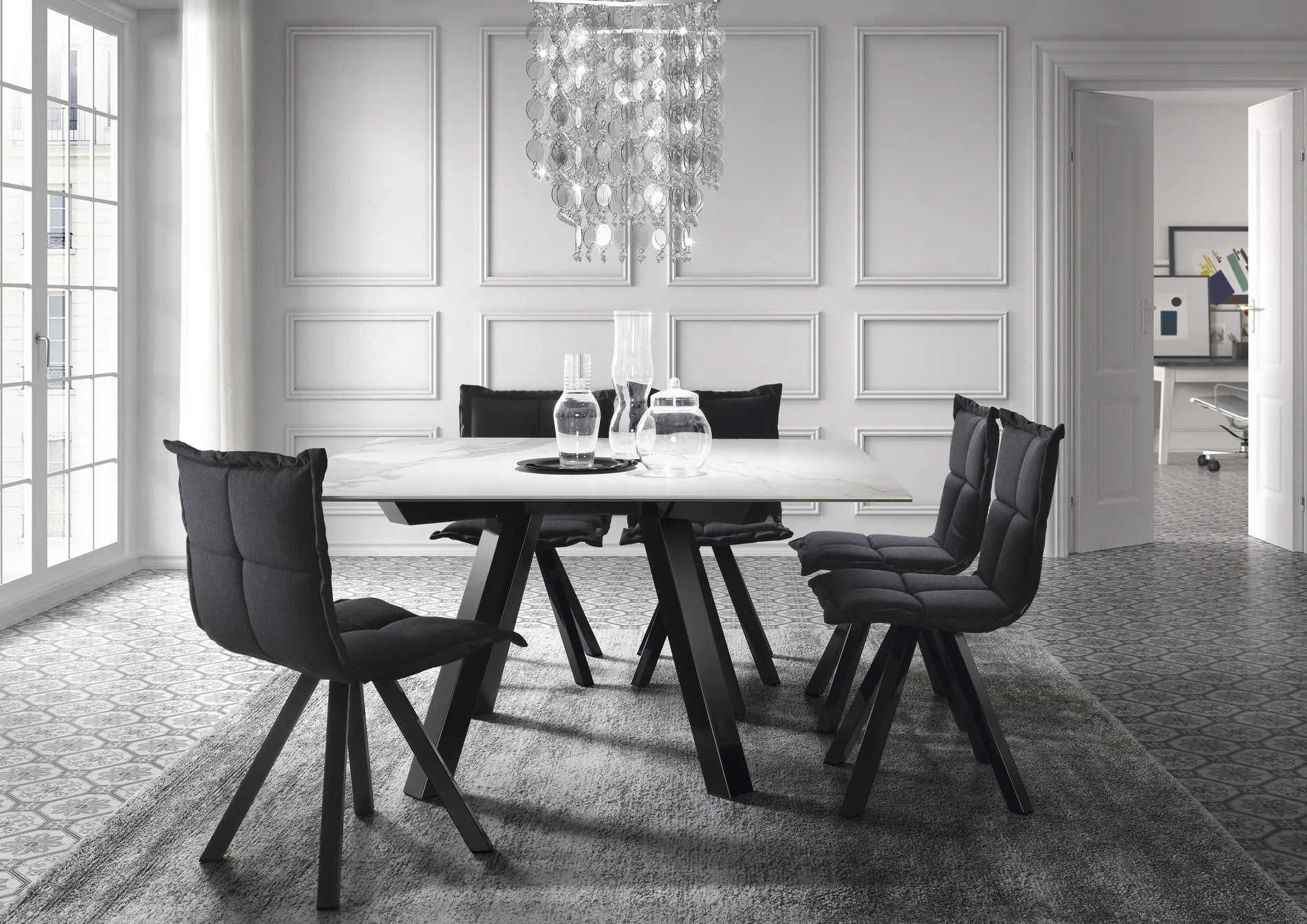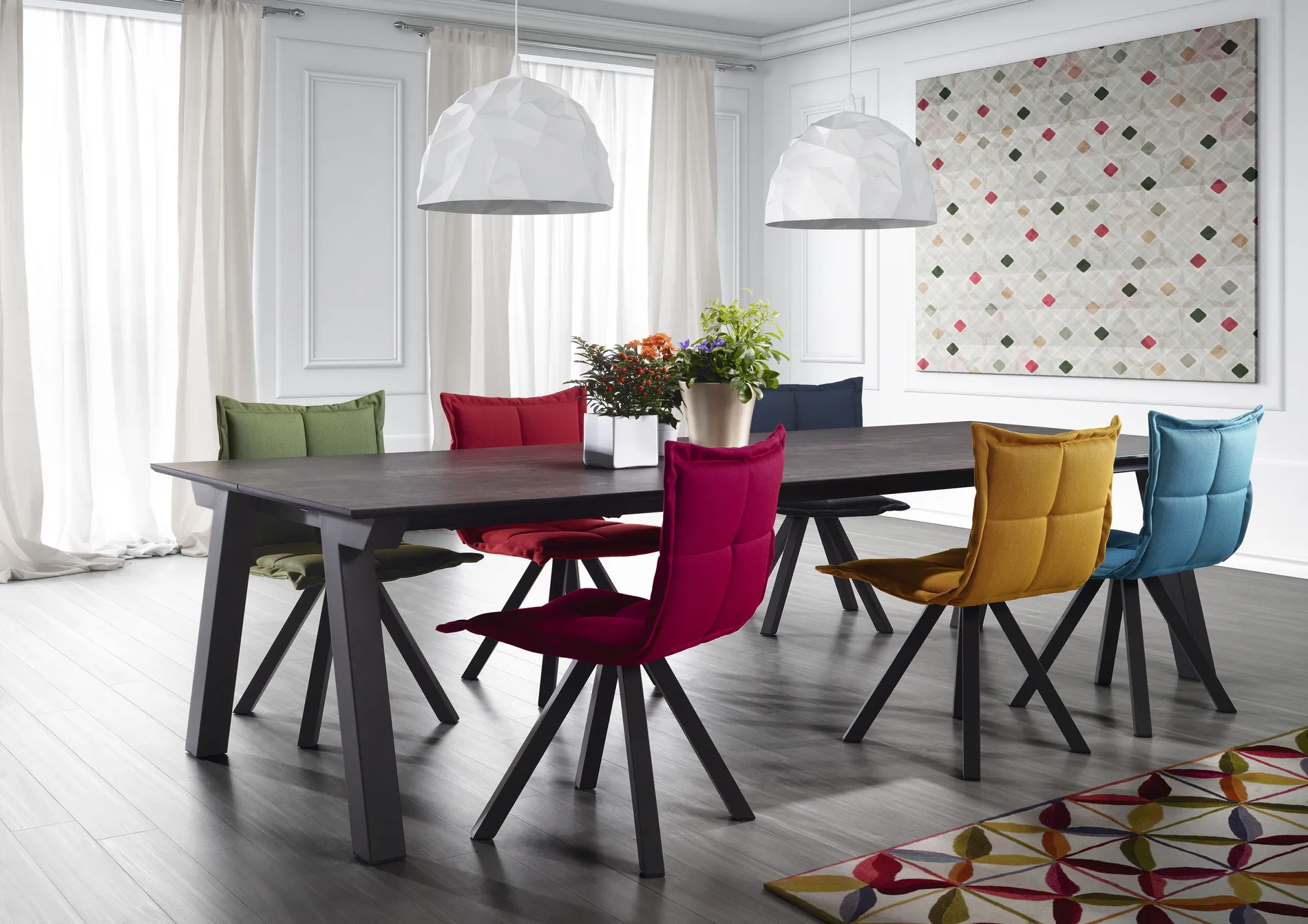 MARAIS представляет собой серию стульев с металлическими ножками, которые имеют семь различных типов сидений (три с высокой спинкой и четыре с низкой спинкой). Среди различных используемых тканей-ткани датской фирмы Kvadrat, которые обладают высокими техническими характеристиками.