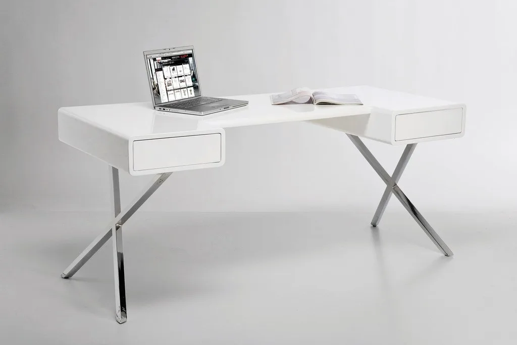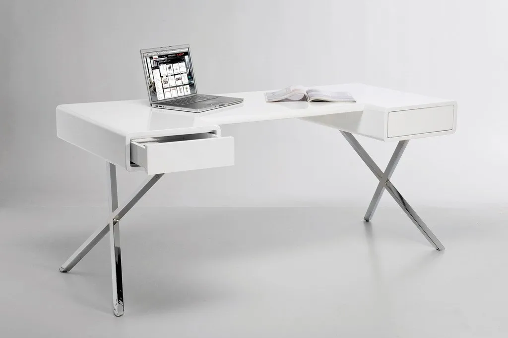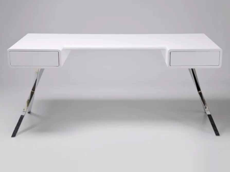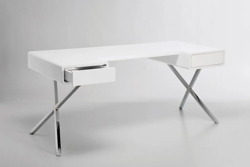 дизайнерский стол в привлекательном стиле с тонким силуэтом. Скрещенные ножки из хромированной стали придают ощущение ретро. материал: верх : лакированный МДФ, основание: хромированная сталь.