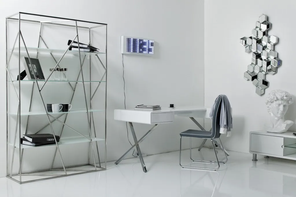 дизайнерский стол в привлекательном стиле с тонким силуэтом. Скрещенные ножки из хромированной стали придают ощущение ретро.
