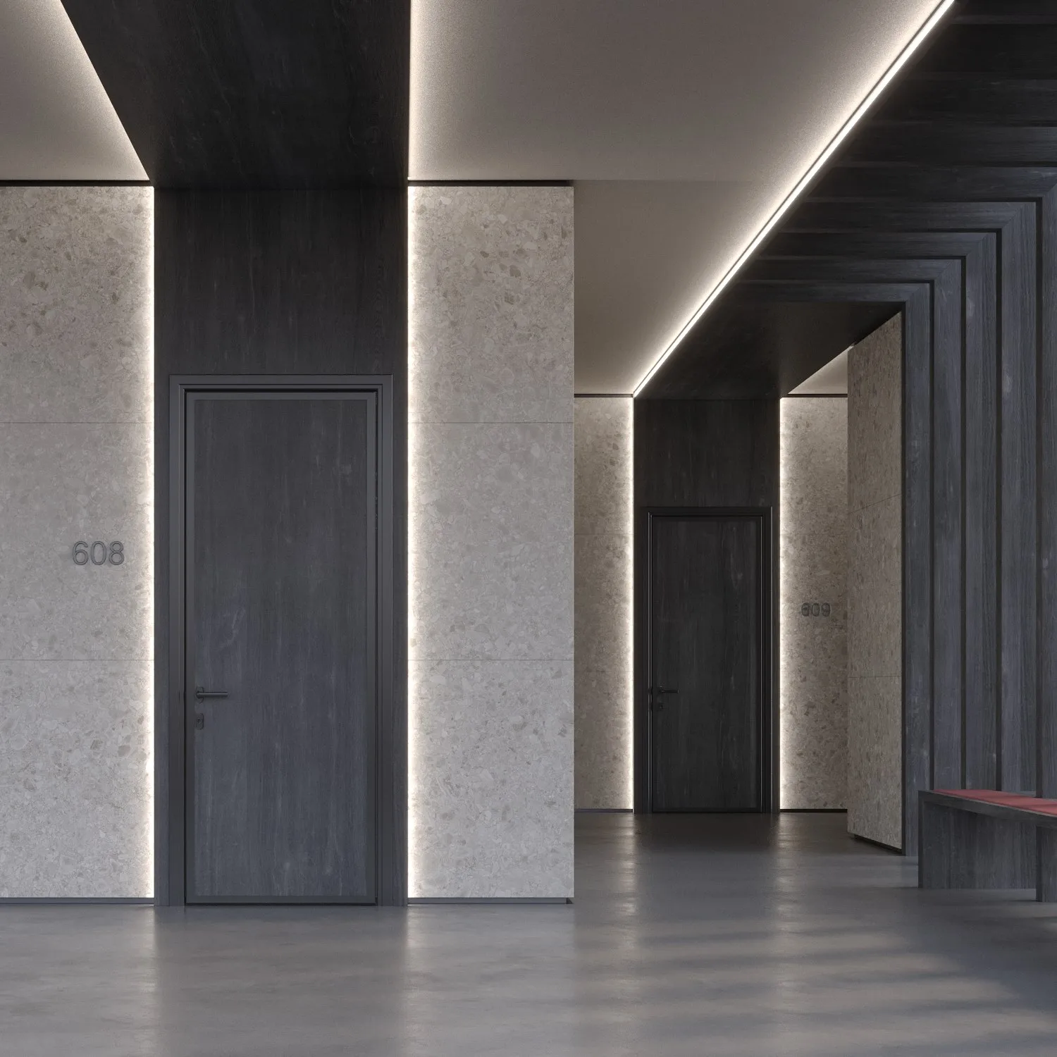 алюминиевые копланарные двери представляют собой идеальную линию дверей для любой среды, с различными эстетическими решениями на профилях и панелях, которые благодаря копланарности между профилем и дверью создают решение большой элегантности.