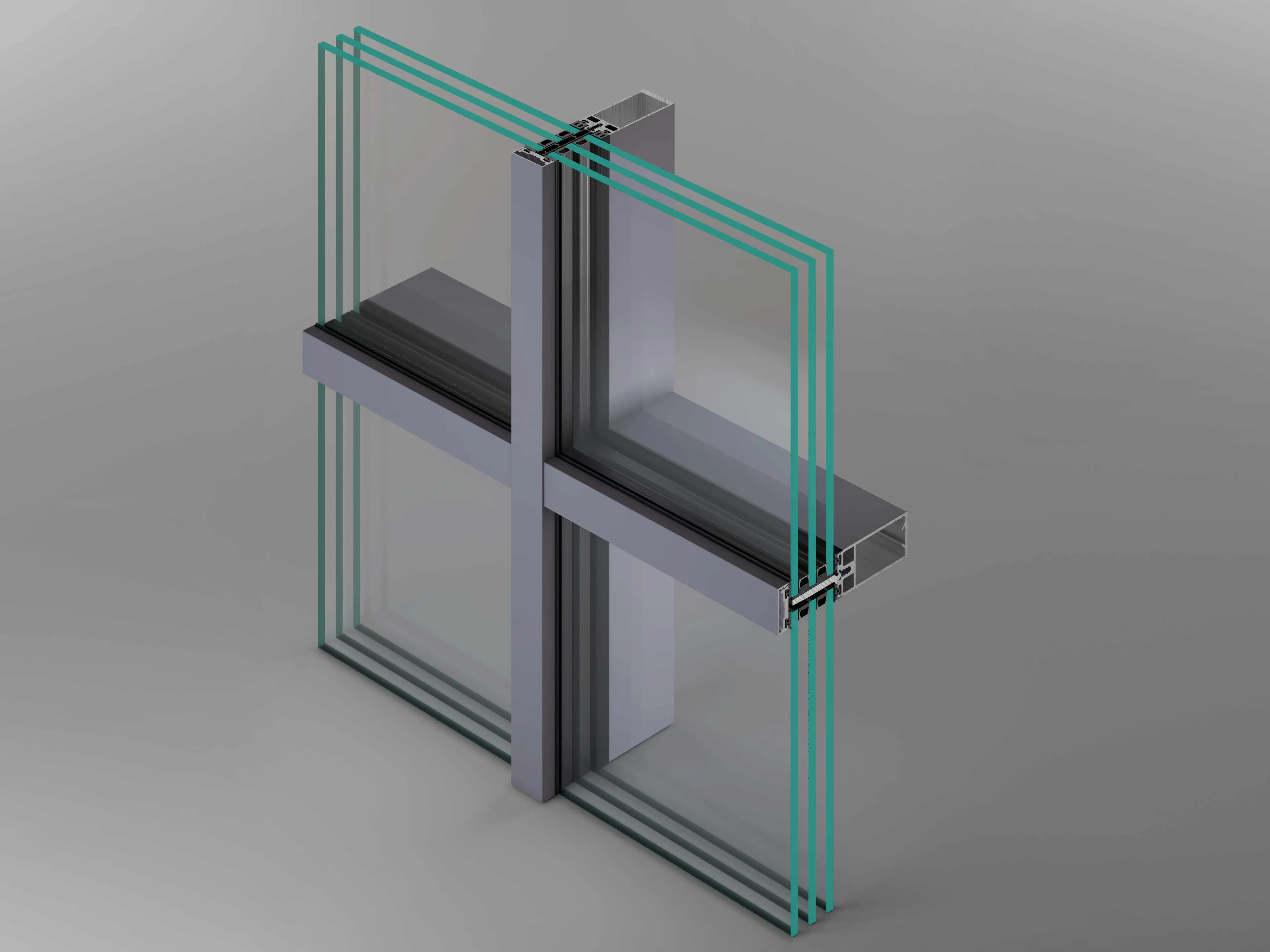 в фасадах со стойками и поперечинами типа Polyedra Sky 35 Lux, 50, 60 структурная решетка создается путем соединения вертикальных и горизонтальных элементов с открывающимися или фиксированными стеклянными перегородками. Сборка этого типа фасада происходит на строительной площадке.