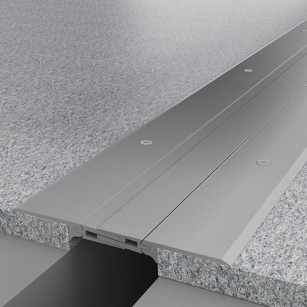 Novojunta Pro® Metal SP90 is a system of profiles entirely made of aluminum to be installed in overlaid expansion joints up to 90 mm width. Allows multidirectional movements thanks to its design, with ball-and-socket joint system on the side pieces. the size of the side pieces is enough to be safely installed in floorings with the screws supplied. With the visible Side striated, is perfect for areas with high traffic thanks to its good resistance of heavy loads and wear resistance. Available with perimete...