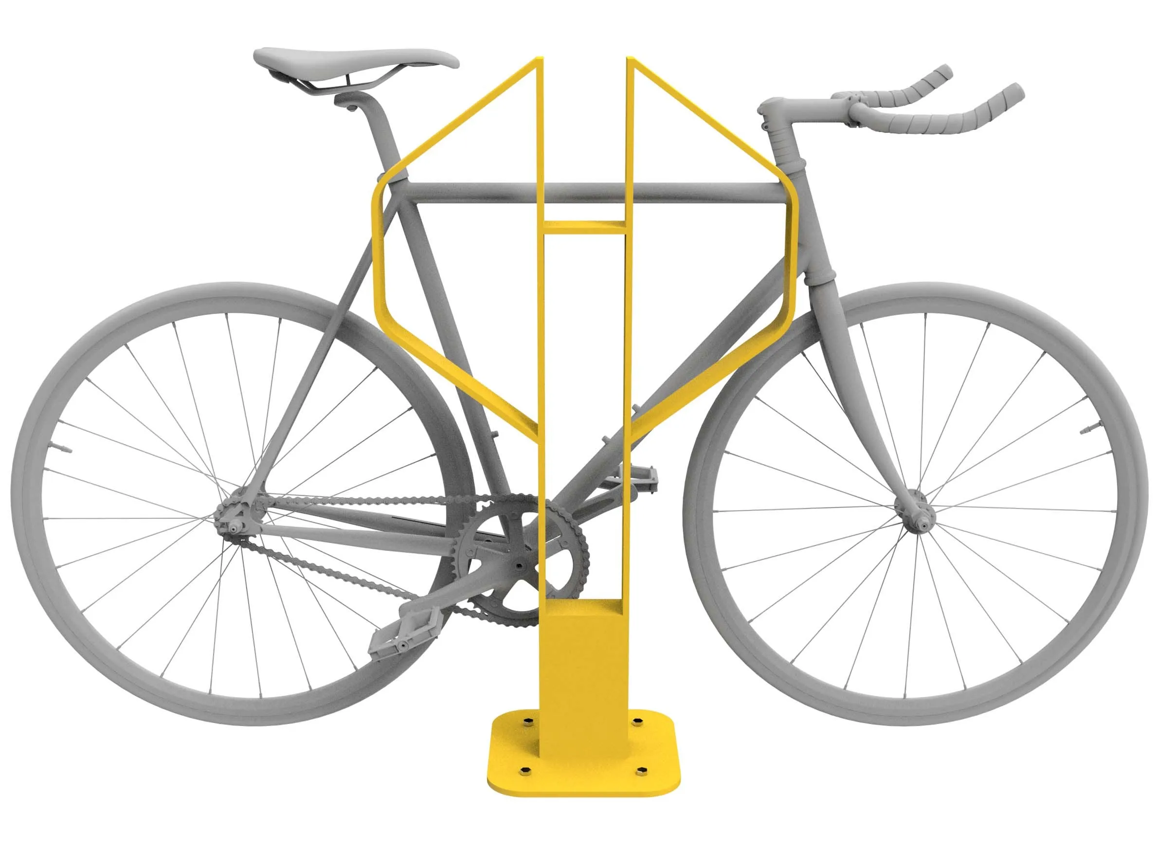 Hexa - это простая, прочная, красочная и Moderna design велосипедная стойка. Идеально подходит сам по себе или с другими частями разных цветов, он позволяет положить велосипед и надеть цепь или замок на раму. Формируется из железной пластины 60x8 мм с пластиной для тесселяции.