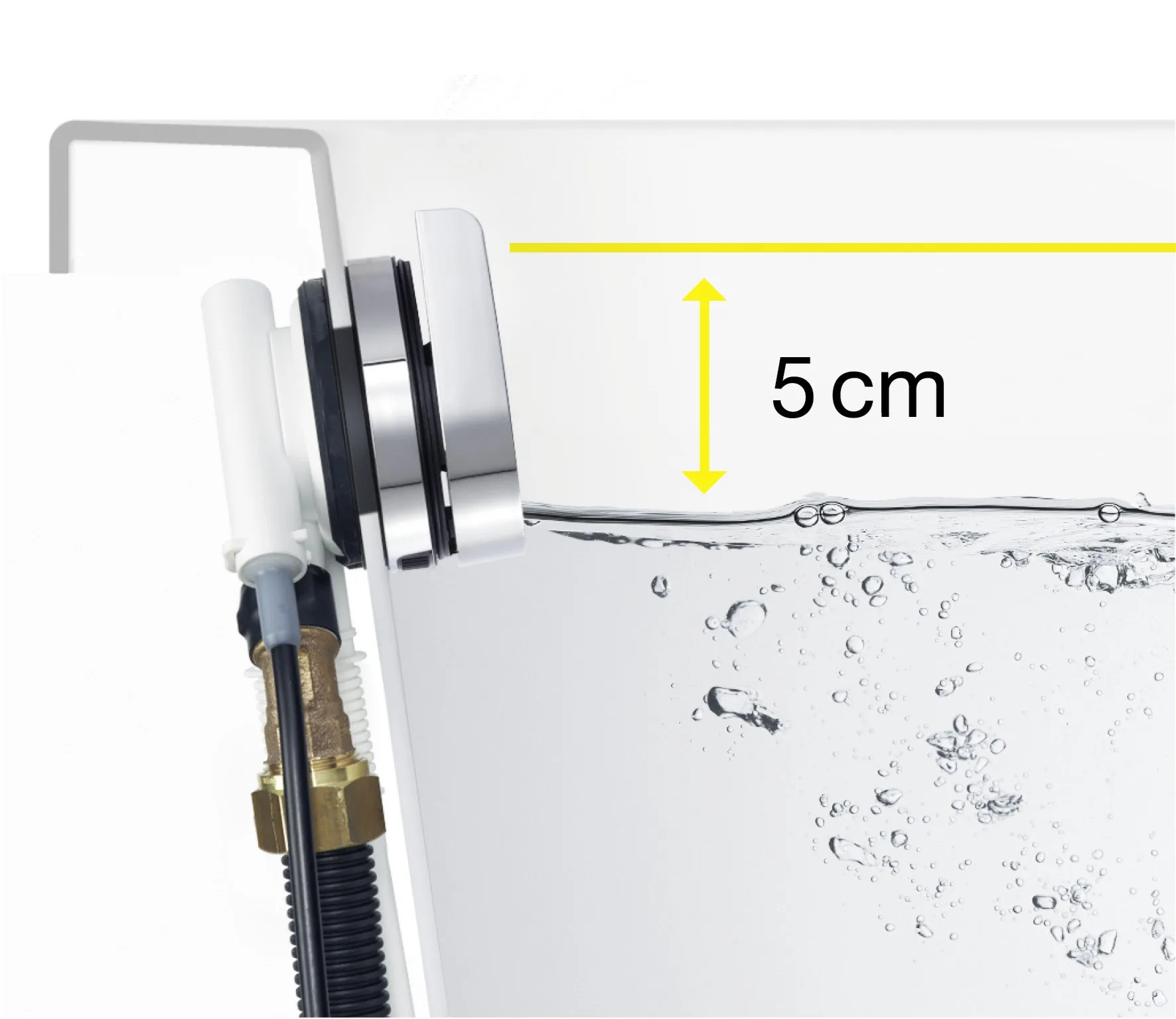 за формальной простотой новых моделей Multiplex Visign M9 и Multiplex Visign Trio MT9 скрывается простой механизм, но чрезвычайно эффективен. Слегка нажав на поворотную ручку, прорезь, которая находится чуть ниже ручки, закрывается, и уровень воды может быть поднят на пять сантиметров выше стандарта. Слегка потянув ручку, лишняя вода вытекает из той же щели, и уровень снова падает до начального состояния. Функция перелива гарантирована в любой ситуации. Открытие и закрытие слива обрабатываются, как обычно, поворотом ручки 180 градусов.