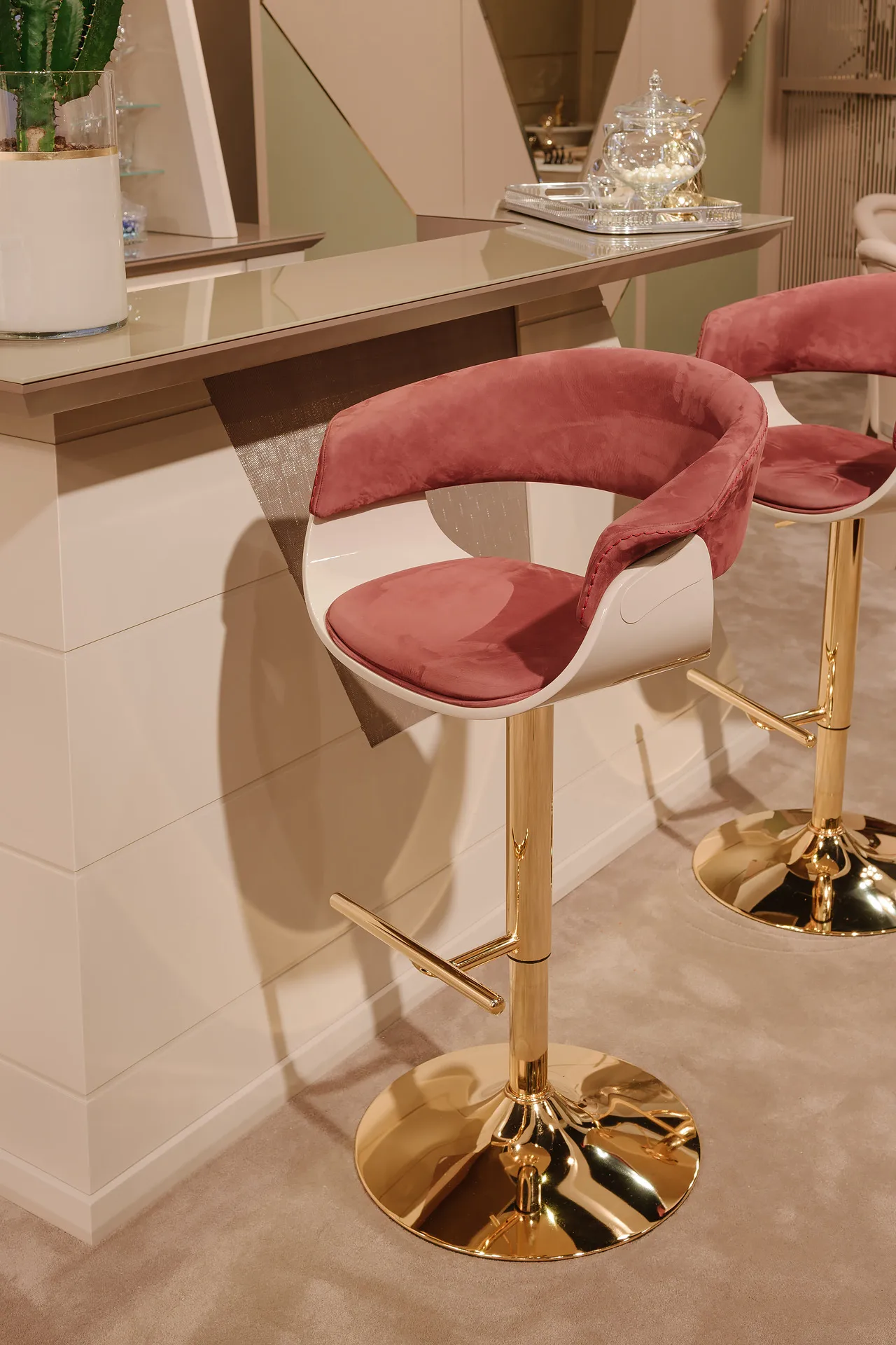 табурет Vismara был задуман как идеальное место для барной стойки. Конструкция выполнена из лакированного дерева и нержавеющей стали. Спинка и сиденье обиты подкладкой из нубука, ЭКО-нубука, бархата или ткани, которую предпочитает клиент. Благодаря небольшому рычагу табурет можно использовать на разной высоте в соответствии с вашими потребностями.