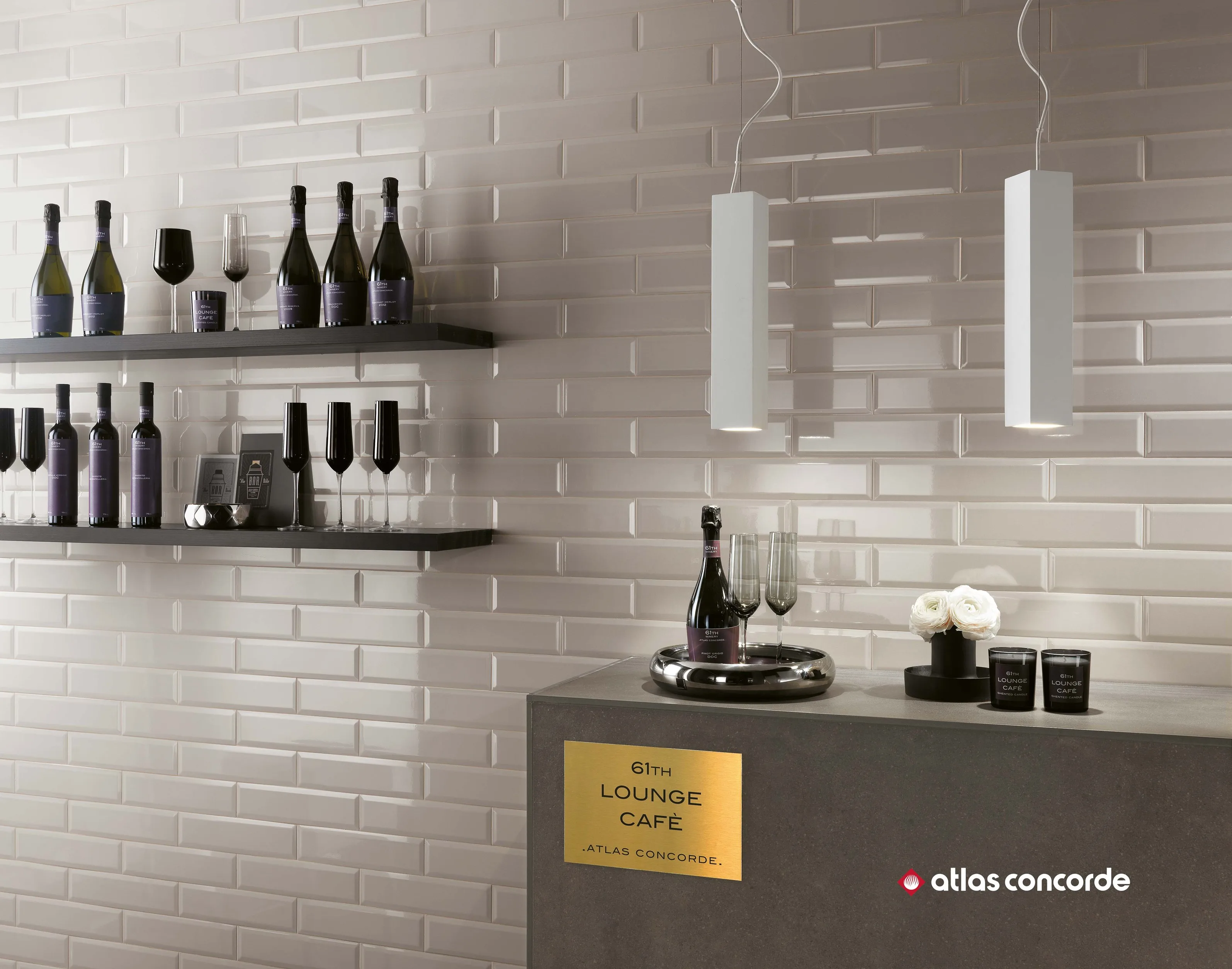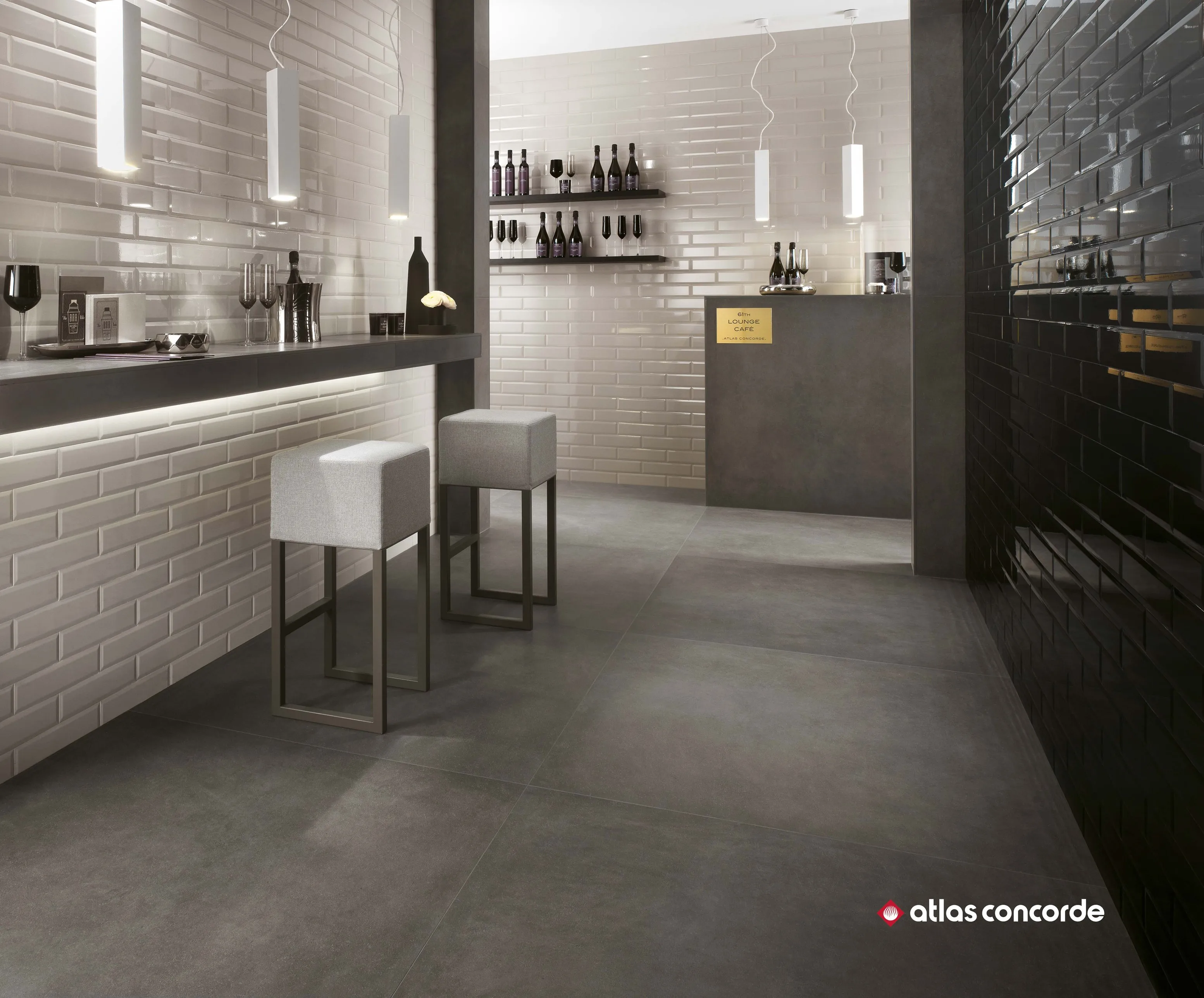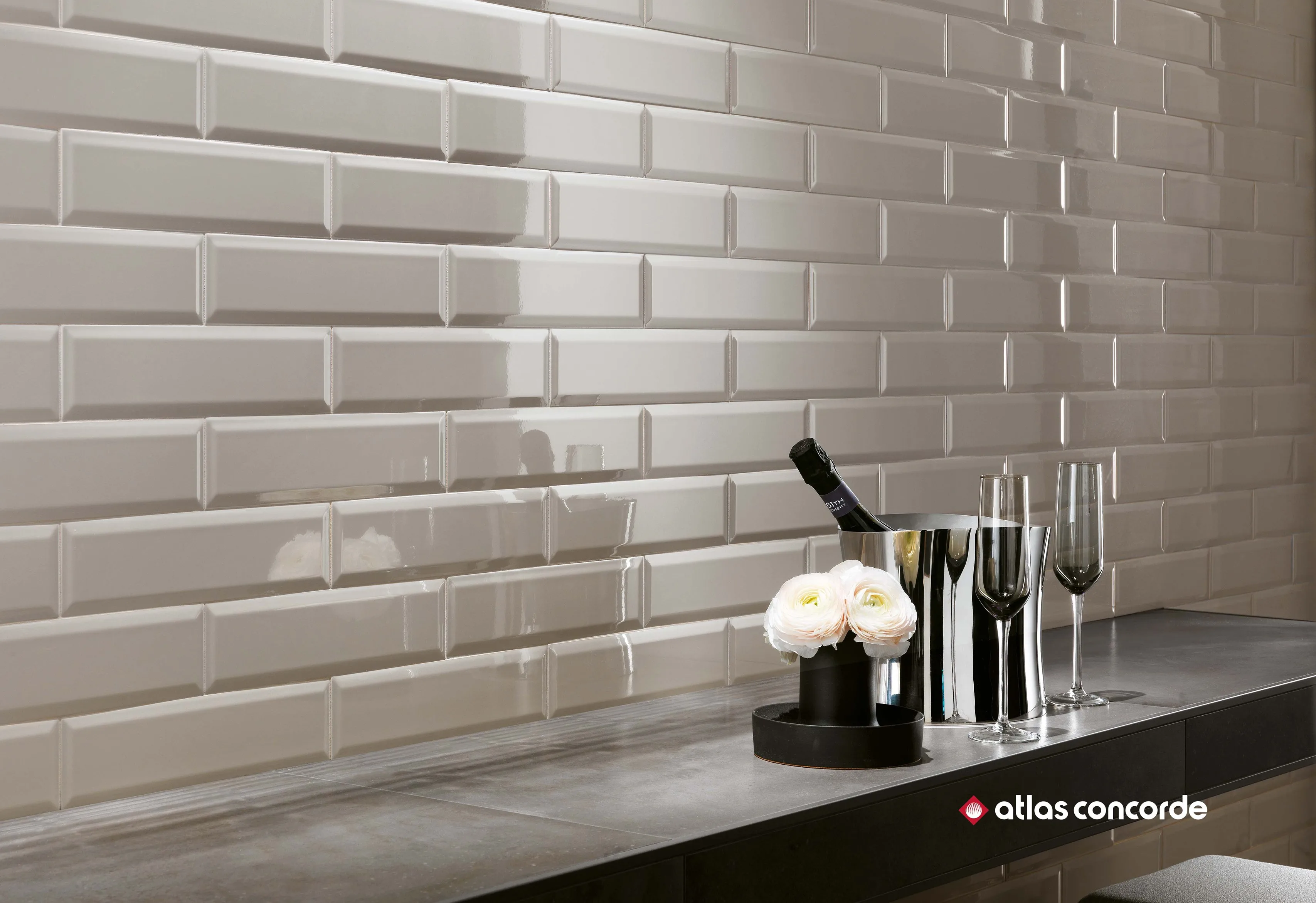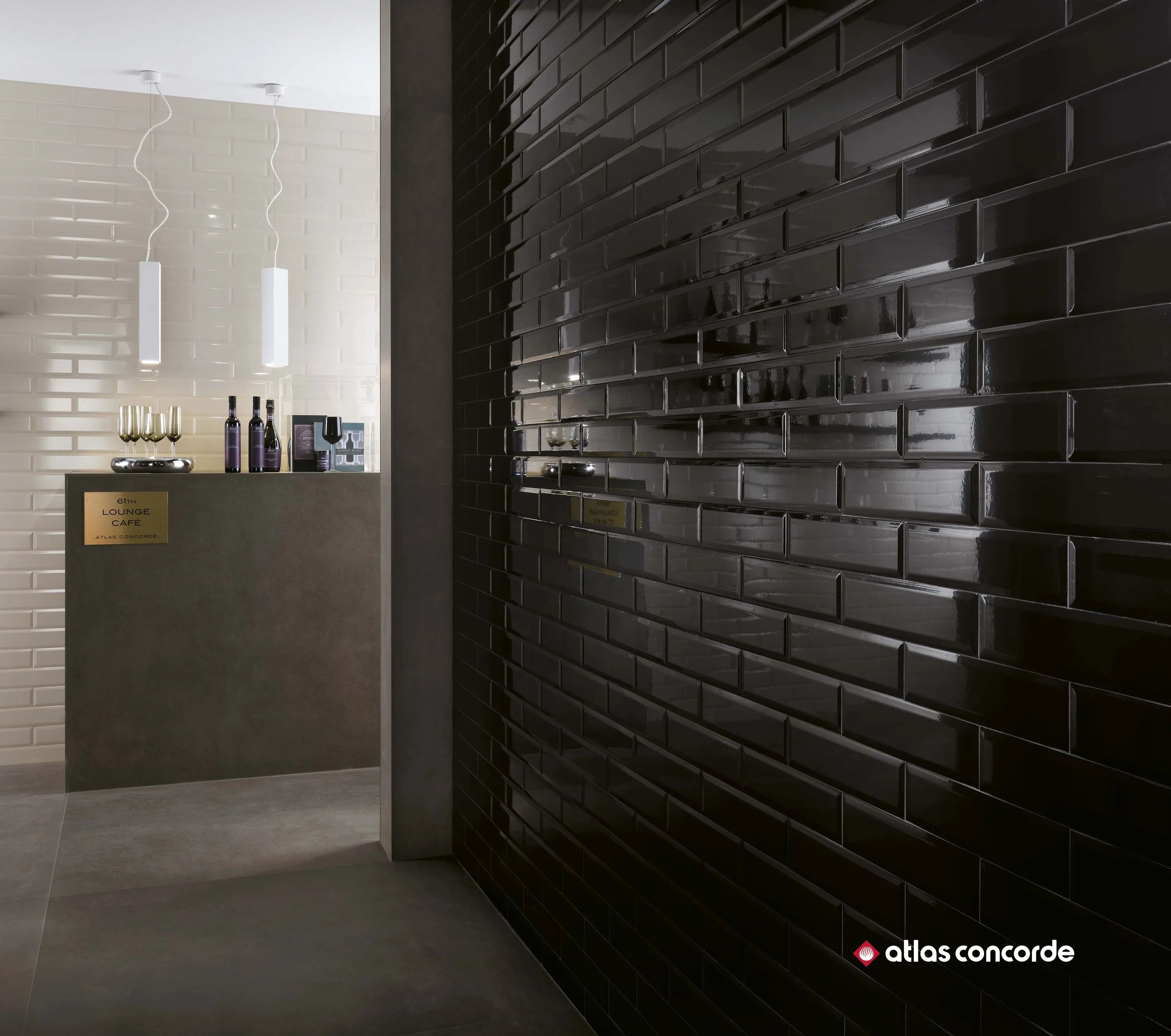 Brick Atelier BEVEL предлагает покрытие с алмазным эффектом белого, черного и светло-серого цветов. Алмазная плитка 8x31, 5 см в изысканном ключе переосмысливает плитки метро Нью-Йорка для изысканных и модных интерьеров.