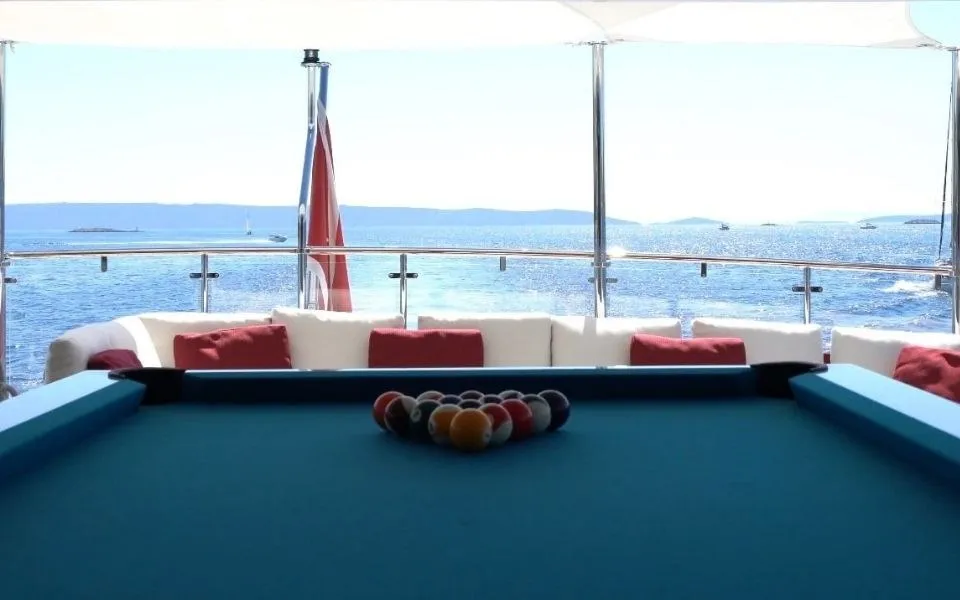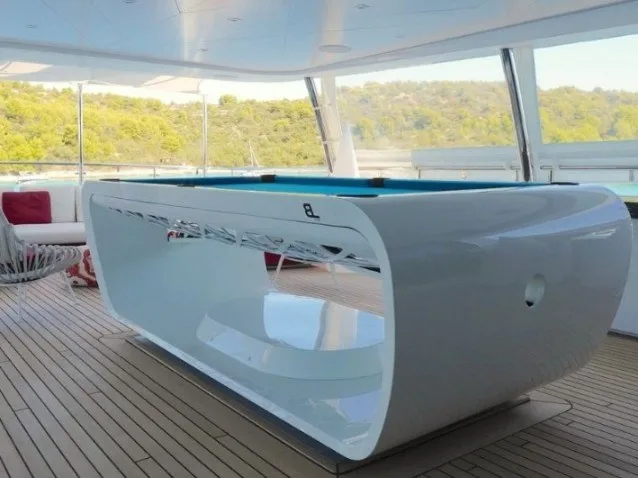 сочетание удовольствия от парусного спорта и игры в бильярд может показаться несовместимым. Как вы сочетаете движения лодки с основной плоскостью бильярдного стола? Благодаря сотрудничеству с норвежской компанией Stable, Billards Toulet взяла на себя задачу разработать первый бильярдный стол с гироскопическим дизайном. Платформа позволяет держать бильярд всегда стабильным и, следовательно, играть при любых обстоятельствах.