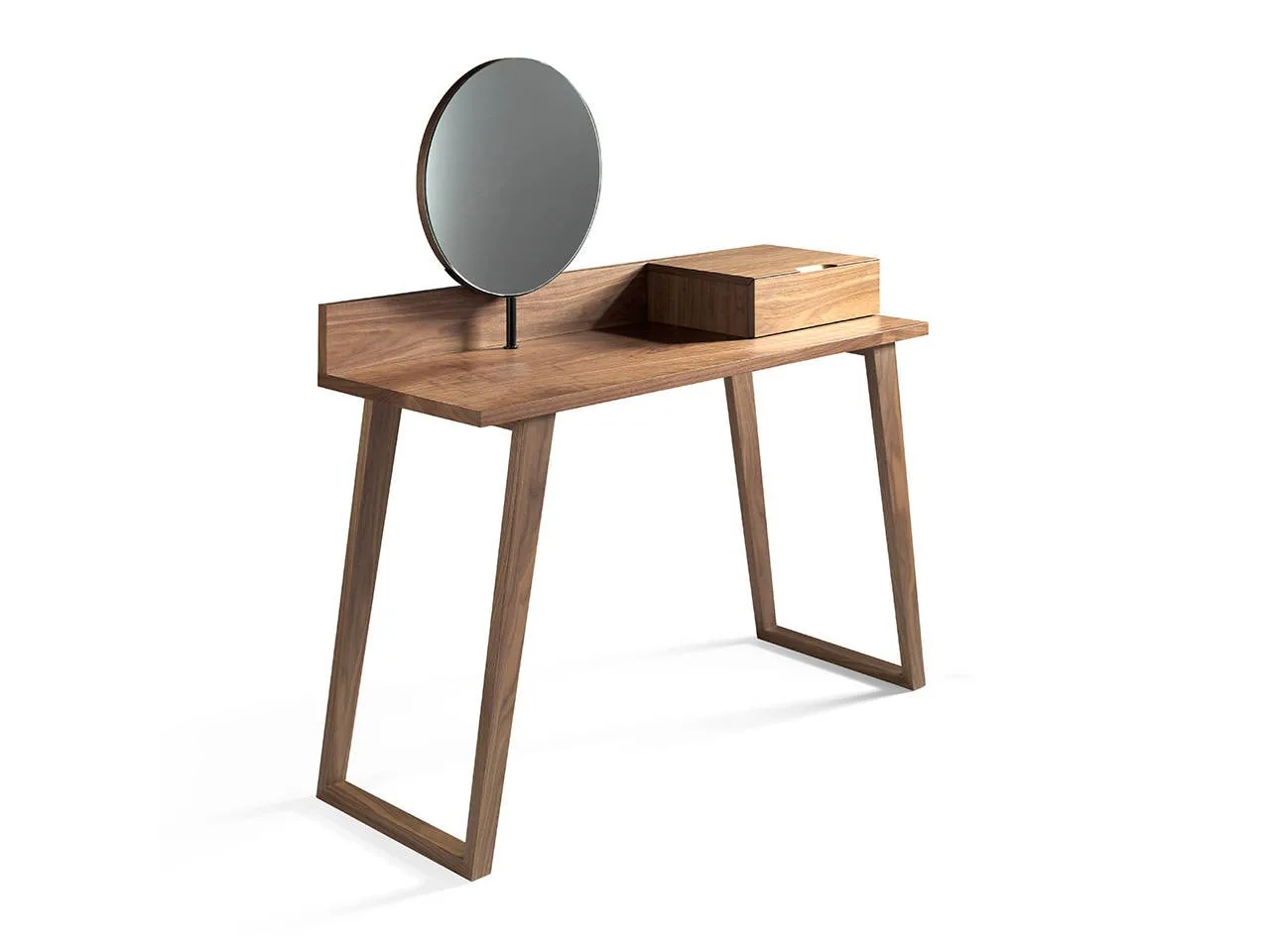 функциональность: минималистский и современный стиль этого стола привносит в пространство широту и ощущение тепла, а также большую функциональность Moderna благодаря боковому ящику и вращающемуся зеркалу.
