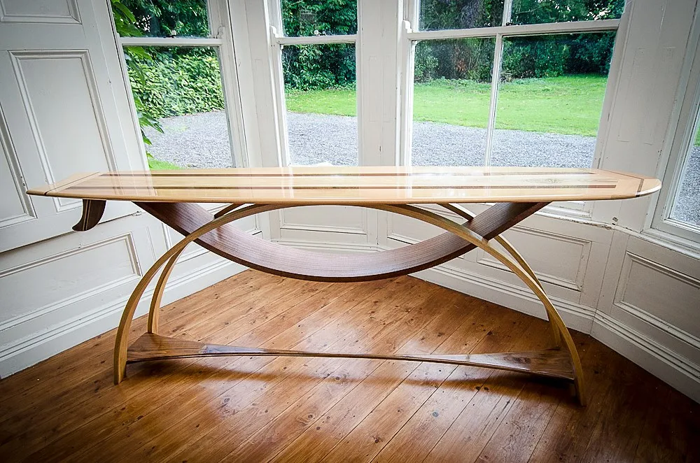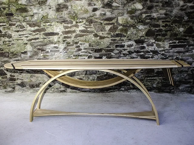 FLUCTUS - это деревянная консоль, вдохновленная оригинальной калифорнийской доской для серфинга 1960-х годов.