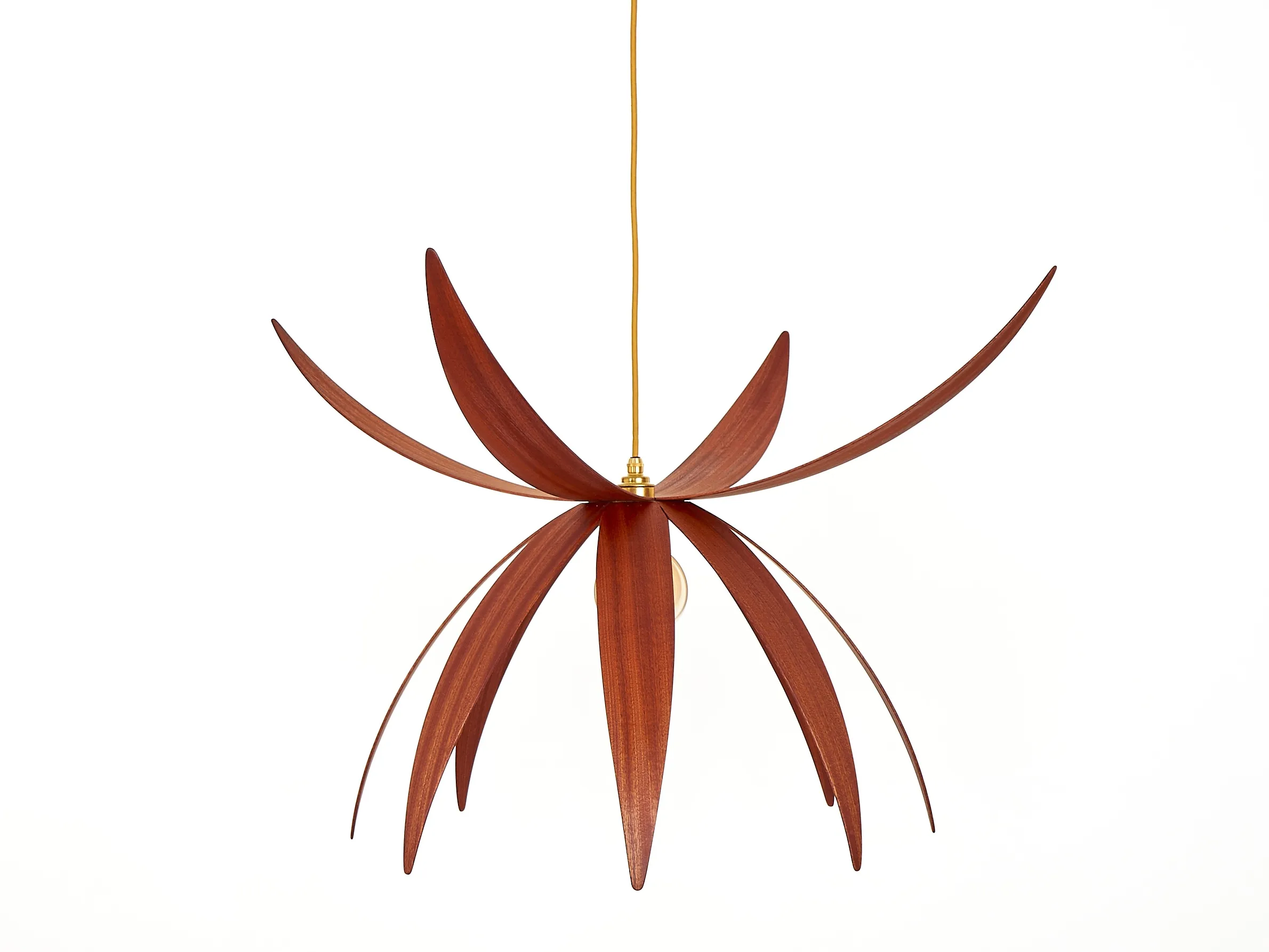 эта деревянная лампа является частью цветочной коллекции Алана Хоргана и вдохновлена некоторыми из самых красивых творений, которые может предложить природа. STELLA доступен в дубе или комбинации ореха и дерева из дуба он адаптируется к широкому спектру стилей дизайна интерьера, от современного до традиционного. Он подходит для различных установок, от жилых до коммерческих, особенно в сфере розничной торговли и гостиничного бизнеса. Каждая деталь изготовлена вручную и дополнена красивой матовой атласной отделкой, которая еще больше подчеркивает ее чистоту. Его внушительные размеры, диаметр которых достигает 1,3 метра, не влияют на его вес. Кусок невероятно легкий, Что означает, что он не требует дополнительных опорных кабелей или цепей. Лампа STELLA является выдающимся центральным элементом, когда она висит сама по себе, но она одинаково эффективна при установке в линейном или круговом кластере с одной или несколькими подвесками марки.