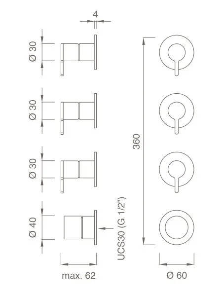 душевая группа с термостатическим смесителем и 3 стопорными кранами доступные отделки:Сатинполированныйспециальные отделки:X. Light goldP. медьZ. бронза KD. Black Diamond коллекция смесителей из нержавеющей стали AISI 316L, выпускается в вариантах однорычажный, двухрычажный и термостатический смесители. Благодаря цилиндрическому корпусу диаметром 30 мм INNOVO представляет собой эволюцию традиционного дизайна. Облегченный и тонкий, INNOVO-это ковать абсолютной элегантности, украшенный особенно эргономичной...
