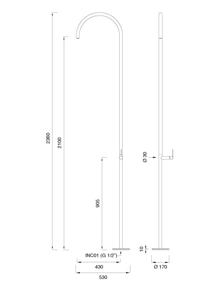тонкая и элегантная эстетика гарантирует поперечное использование как на открытом воздухе, так и в помещении. К чистоте конструкции присоединяется функциональность дозаторов, доступных в двух вариантах: с аэратором с открытой струей и с насадкой для душа диаметром 200 мм и дождевой струей с расходом 12 л / мин с давлением 3 бар, управляемым управлением смесителя. Наружные душевые кабины INNOVO изготовлены из нержавеющей стали AISI 316L, доступны в атласной и полированной отделке. Изделия нуждаются в заземлении встраиваемого корпуса.