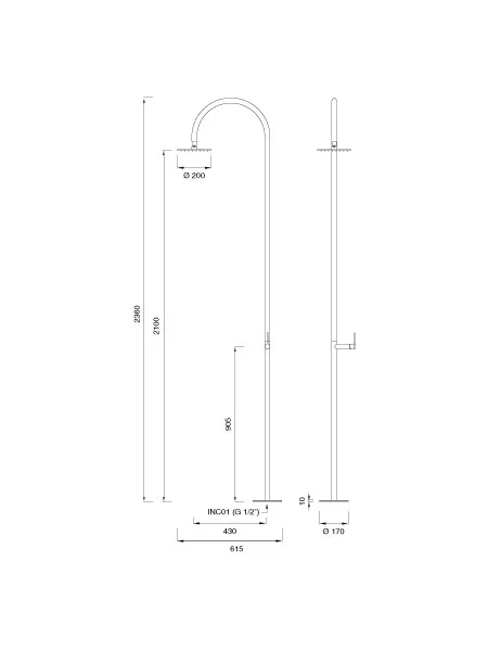 открытый отдельно стоящий душ из нержавеющей стали AISI 316L, управляемый смесителем INNOVO. Круглая регулируемая насадка для душа с прозрачными силиконовыми насадками и балансировщиком давления доступные отделки: Сатин полированный тонкая и элегантная эстетика гарантирует поперечное использование как на открытом воздухе, так и в помещении. К чистоте конструкции присоединяется функциональность дозаторов, доступных в двух вариантах: с аэратором с открытой струей и с насадкой для душа диаметр 200 мм и дожд...