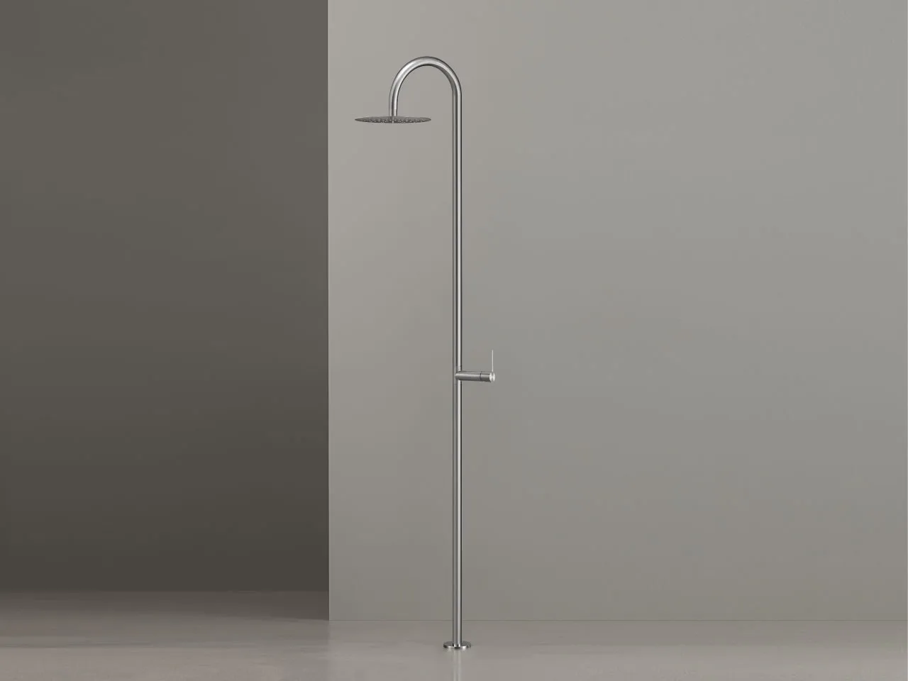 тонкая и элегантная эстетика обеспечивает поперечное использование как на открытом воздухе, так и в помещении. К чистоте дизайна присоединяется функциональность дозировок доступны в двух вариантах: с аэратором с открытой струей, с насадкой для душа диаметром 200 мм и дождевой струей, управляемой управлением смесителем. Наружные душевые кабины от CARTESIO и INNOVO изготовлены из нержавеющей стали AISI 316L, доступны в атласной и полированной отделке, а также во всех специальных отделках CEA (Черный бриллиант, бронза, медь и светлое золото). Изделия нуждаются в заземлении встраиваемого корпуса.