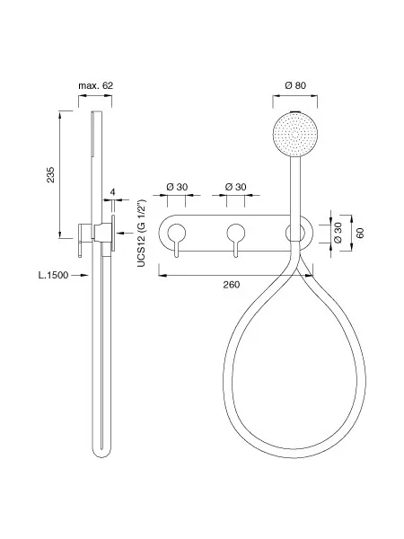 Группа 2 настенные смесители для ванны / душа с ручным душем, дозатор Ø 80 мм