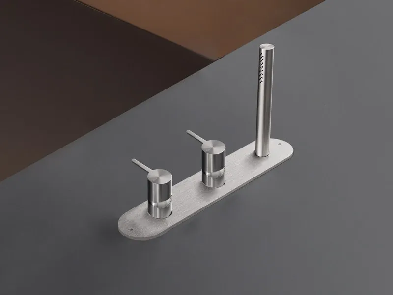 группа 2 смесители для ванны с ручным душем доступные отделки:Сатинполированныйспециальные отделки:X. Light goldP. медьZ. бронза KD. Black Diamond коллекция смесителей из нержавеющей стали AISI 316L, выпускается в вариантах однорычажный, двухрычажный и термостатический смесители. Благодаря цилиндрическому корпусу диаметром 30 мм INNOVO представляет собой эволюцию традиционного дизайна. Облегченный и сделанный тоньше, INNOVO подделывает абсолютная элегантность, украшенная особенно эргономичной ручкой, выпо...