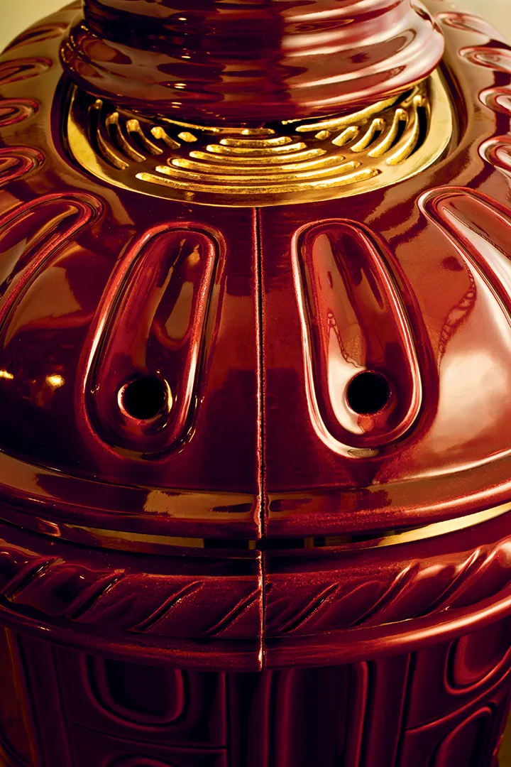 она, кажется, одета в то же парчовое платье, что и “Гранконтесса”, в честь которой она названа, одна из самых важных и очаровательных фигур итальянского средневековья. Предложения ее личности, ее эпохи и "Ars Canusina", вдохновленные ею, послужили идеальной моделью для мастера Серхио Леони, который смог изменить в керамике, трезвым, но обволакивающим образом, чрезвычайно украшенный и изысканный стиль этого конкретного исторического и художественного момента.