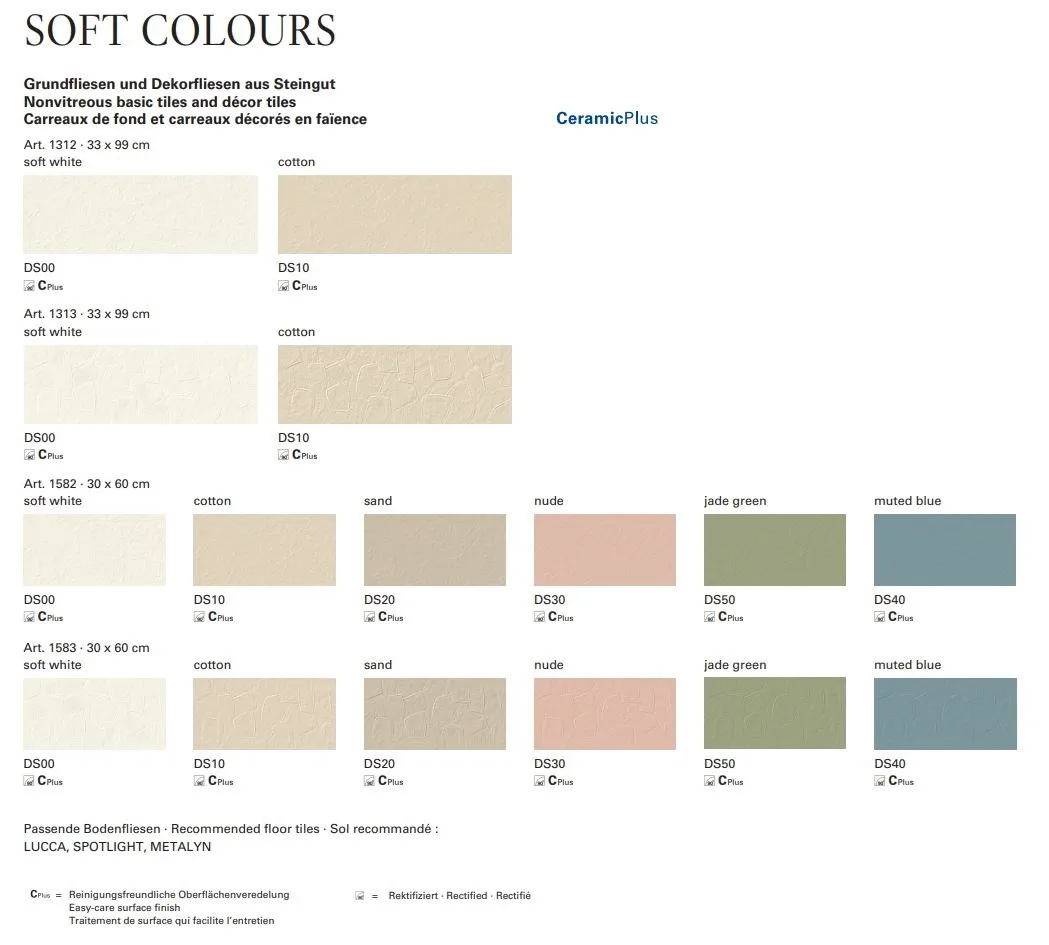 вдохновленный этой традиционной техникой, серия покрытий SOFT COLORS была создана с очаровательной харизмой, которая отражает почтенное мастерство и в то же время интерпретирует его в минималистском стиле. Для этого был создан видимый и тактильный рельеф, напоминающий классическую гипсовую отделку на неглазурованной глазурованной поверхности. Хотя базовая плитка имеет довольно сдержанный оштукатуренный вид, "шпатели" в декоративной плитке они заметно приподняты и покрывают большую площадь трехмерным рельефом, что делает внешний вид "ручной работы" еще более аутентичным.