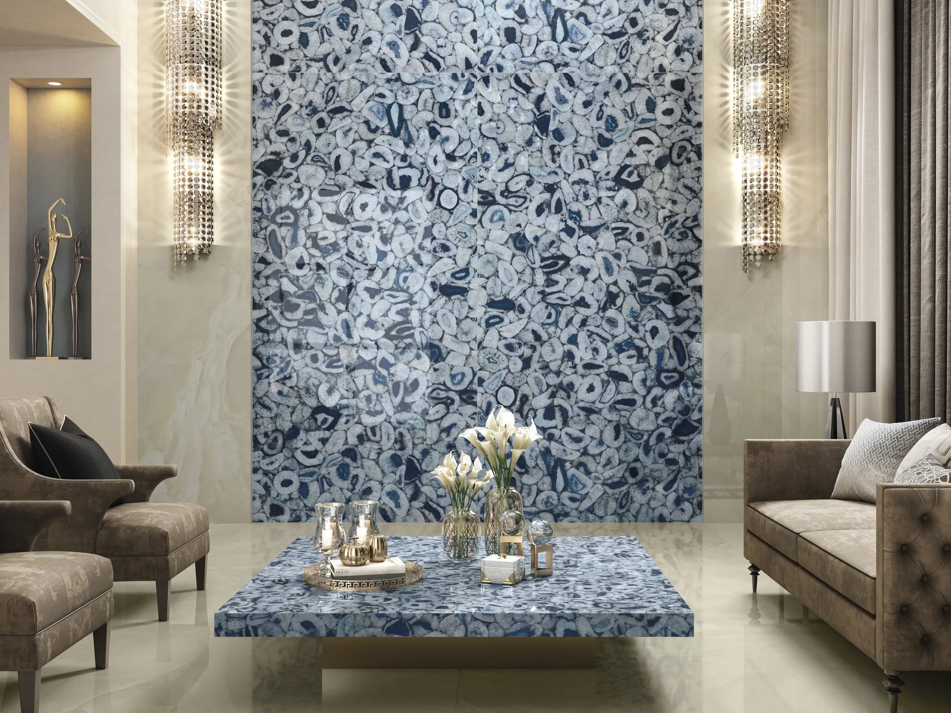 плиты из коллекции Агата Maxfine в синей, черной и Афинской отделках.