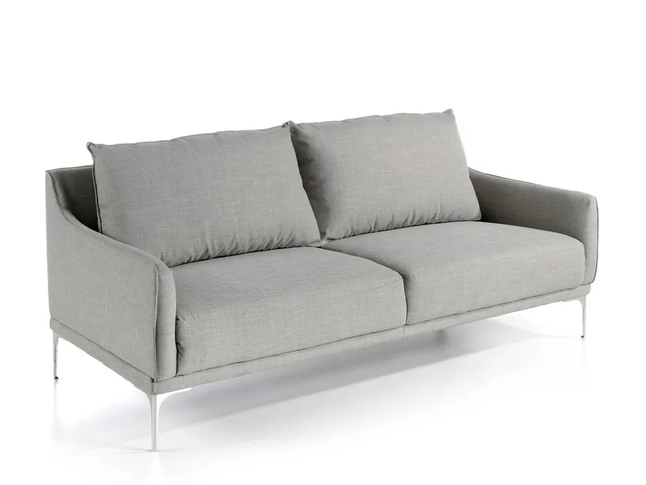 3-местный диван современного дизайна, обитый серой тканью, с оригинальными ножками из твердой хромированной стали. Диван в минималистском Moderna стиле, с прочной внутренней структурой из натурального соснового дерева. Его подушки спинки наполнены пенополиуретаном весом 20 кг / м3, а также обеспечивают дополнительный комфорт,необходимый для расслабления. Идеальный диван, сочетающий Авангард и комфорт.