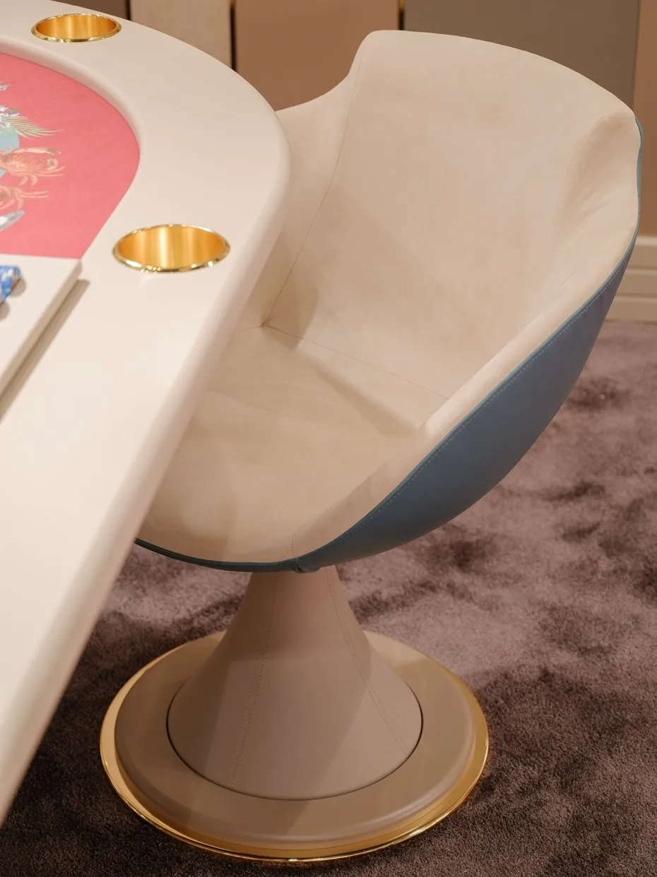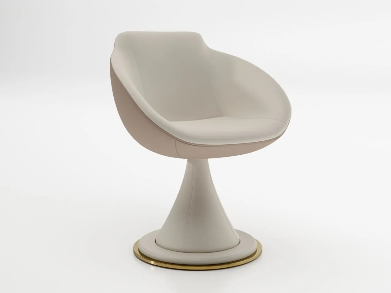 SHELL - это мягкое вращающееся кресло. Внутренняя часть покрыта Эко нубуком, а внешняя часть покрыта гладкой цветочной кожей. Перевернутая коническая ножка, обитая гладкой цветочной кожей и металлическими деталями.