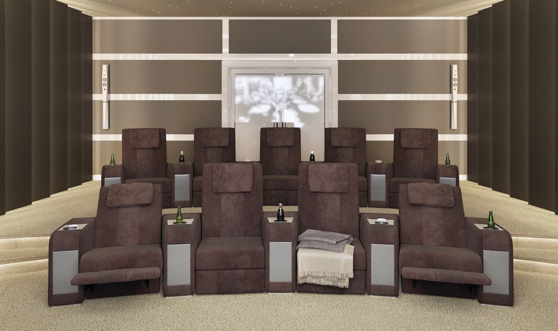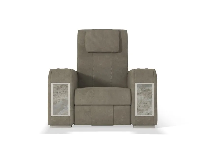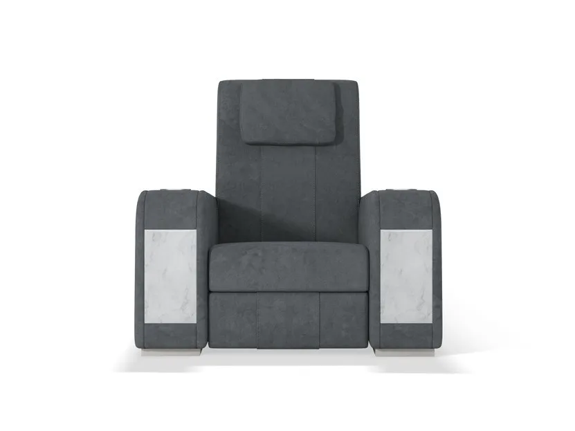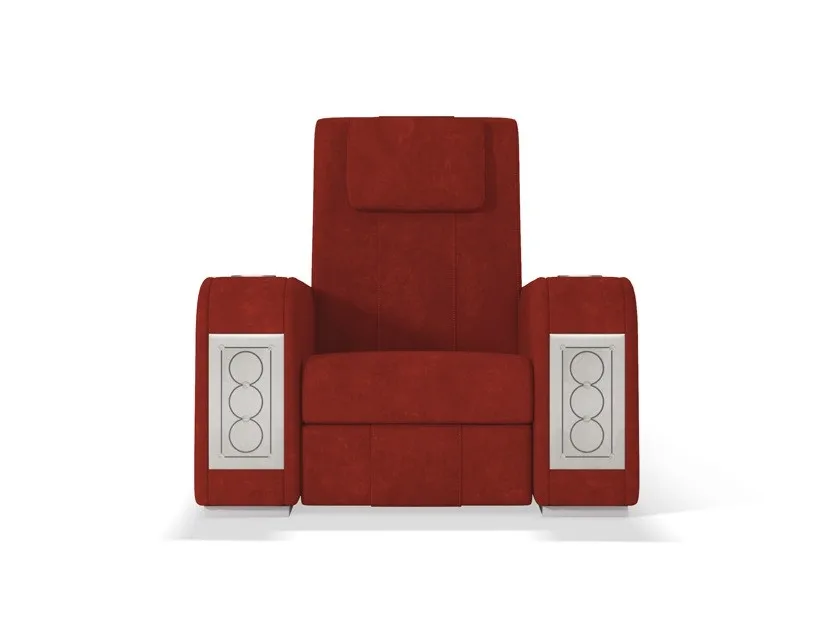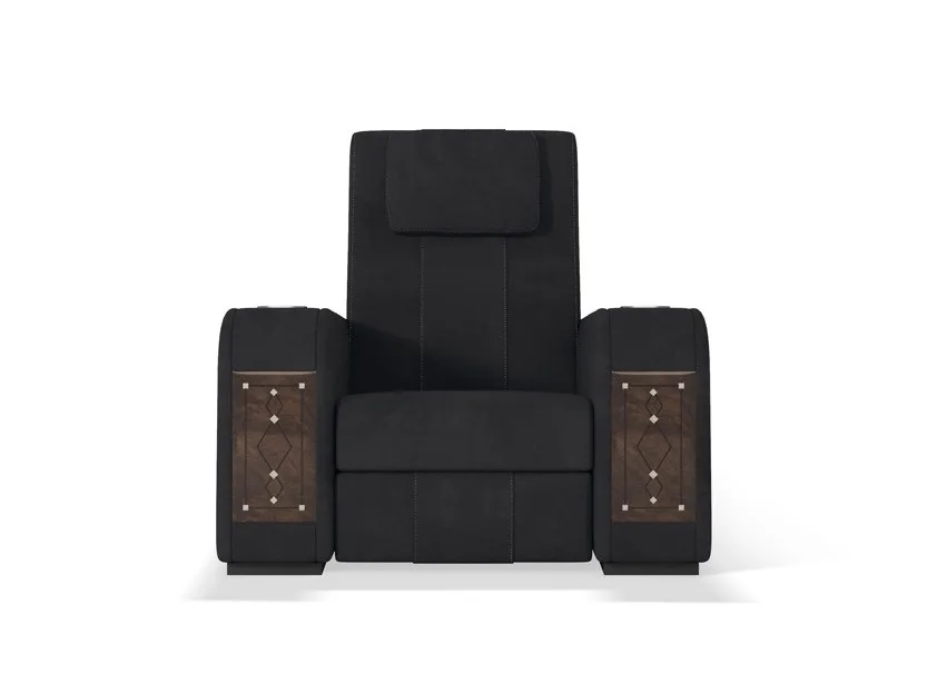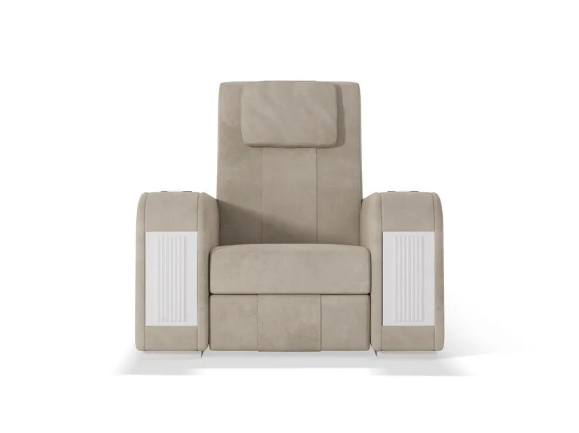 кресло Comfort является наиболее линейным элементом в семействе кресел для кинотеатров. Он отличается идеальным сочетанием комфорта и изысканных деталей, таких как толстая открытая строчка и эргономичные подушки для головы. Особенностью этого изделия является вставка декоративных материалов в переднюю часть подлокотника: драгоценный мрамор, инкрустированные перламутром и эбеновым деревом, вышитая кожа и металлические волокна. Кресло Comfort Recliner может быть персонализированным с держателем охлаждающих стаканов, портами usb, поворотными лампами touch и эксклюзивным баром, который восходит к центральному подлокотнику. Большая универсальность в дизайне кинозала позволяет клиенту по желанию составить свою планировку с прямыми рядами или изогнутыми рядами, включая одноместные кресла, кресла love seats и шезлонги. Кресла Comfort cinema могут быть настроены путем выбора обивки из кожи, тканей или других тканей, выбранных клиентом.