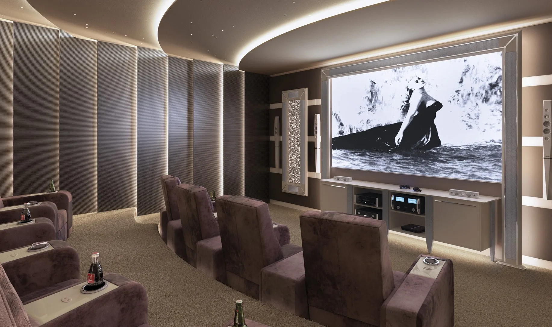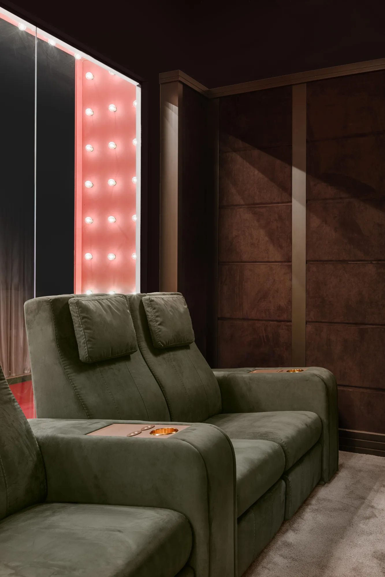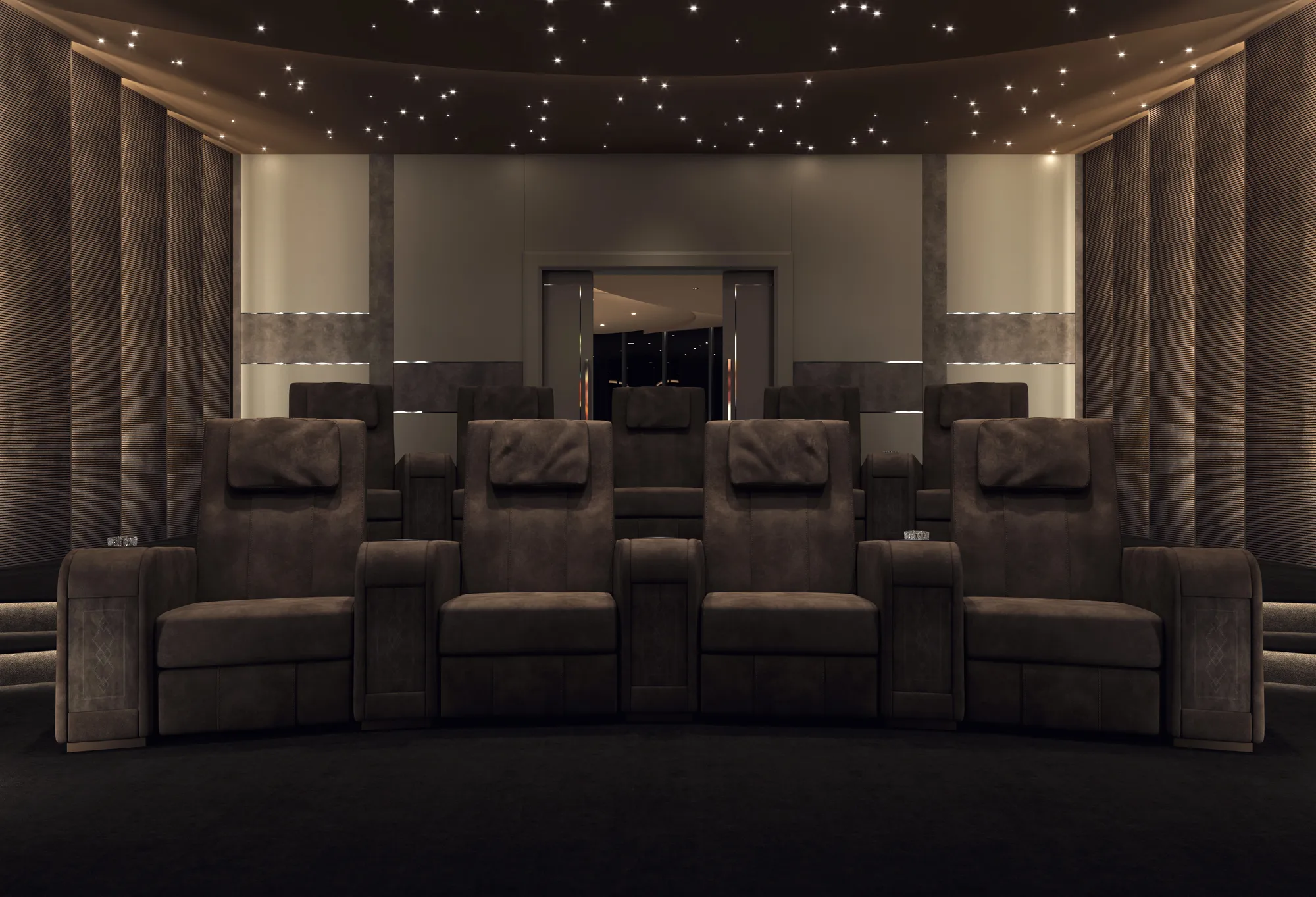 кресло Comfort является наиболее линейным элементом в семействе кресел для кинотеатров. Он отличается идеальным сочетанием комфорта и изысканных деталей, таких как толстая открытая строчка и эргономичные подушки для головы. Особенностью этого изделия является вставка декоративных материалов в переднюю часть подлокотника: драгоценный мрамор, инкрустированные перламутром и эбеновым деревом, вышитая кожа и металлические волокна. Кресло Comfort Recliner может быть персонализированным с держателем охлаждающих стаканов, портами usb, поворотными лампами touch и эксклюзивным баром, который восходит к центральному подлокотнику. Большая универсальность в дизайне кинозала позволяет клиенту по желанию составить свою планировку с прямыми рядами или изогнутыми рядами, включая одноместные кресла, кресла love seats и шезлонги. Кресла Comfort cinema могут быть настроены путем выбора обивки из кожи, тканей или других тканей, выбранных клиентом.