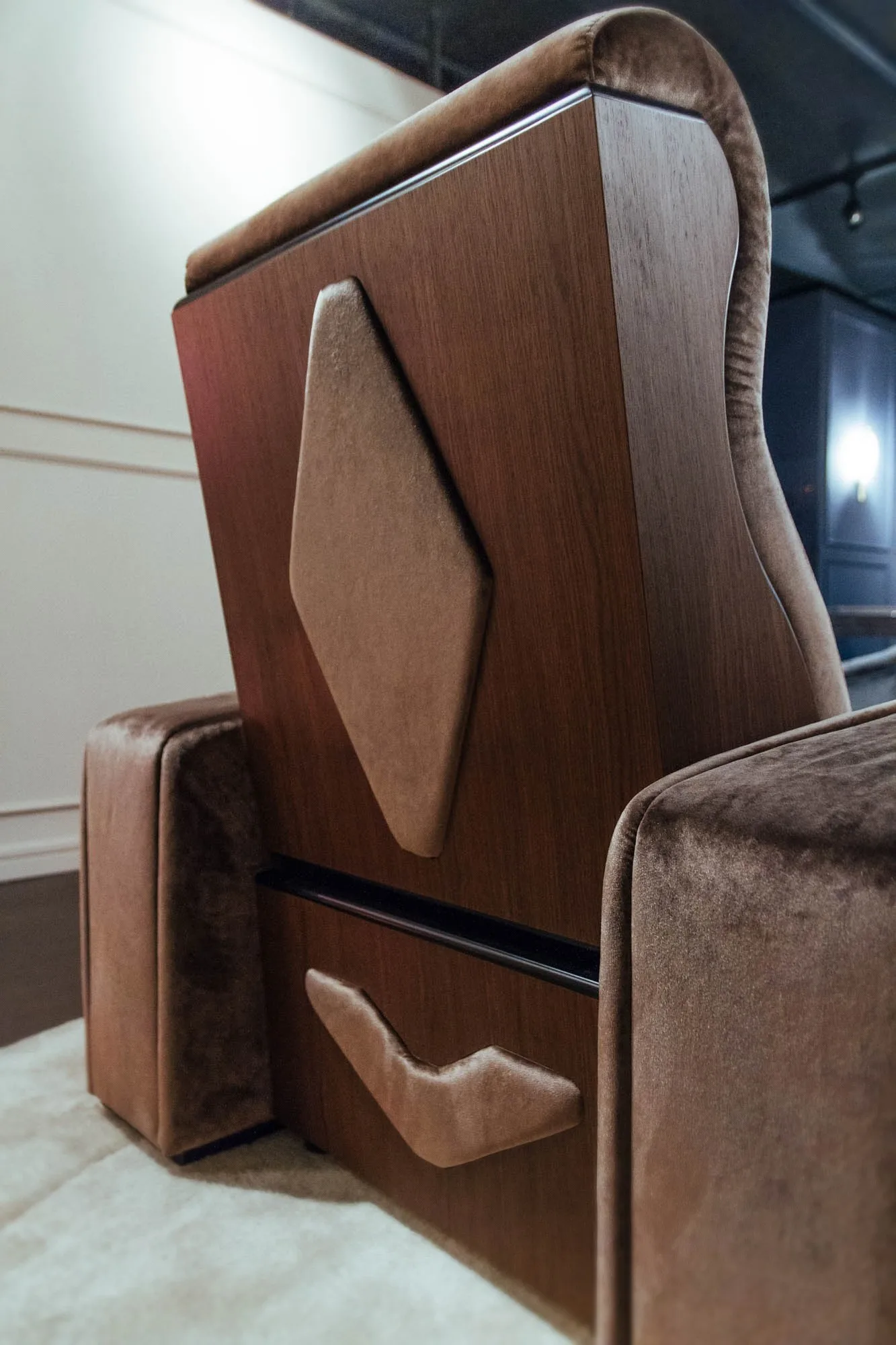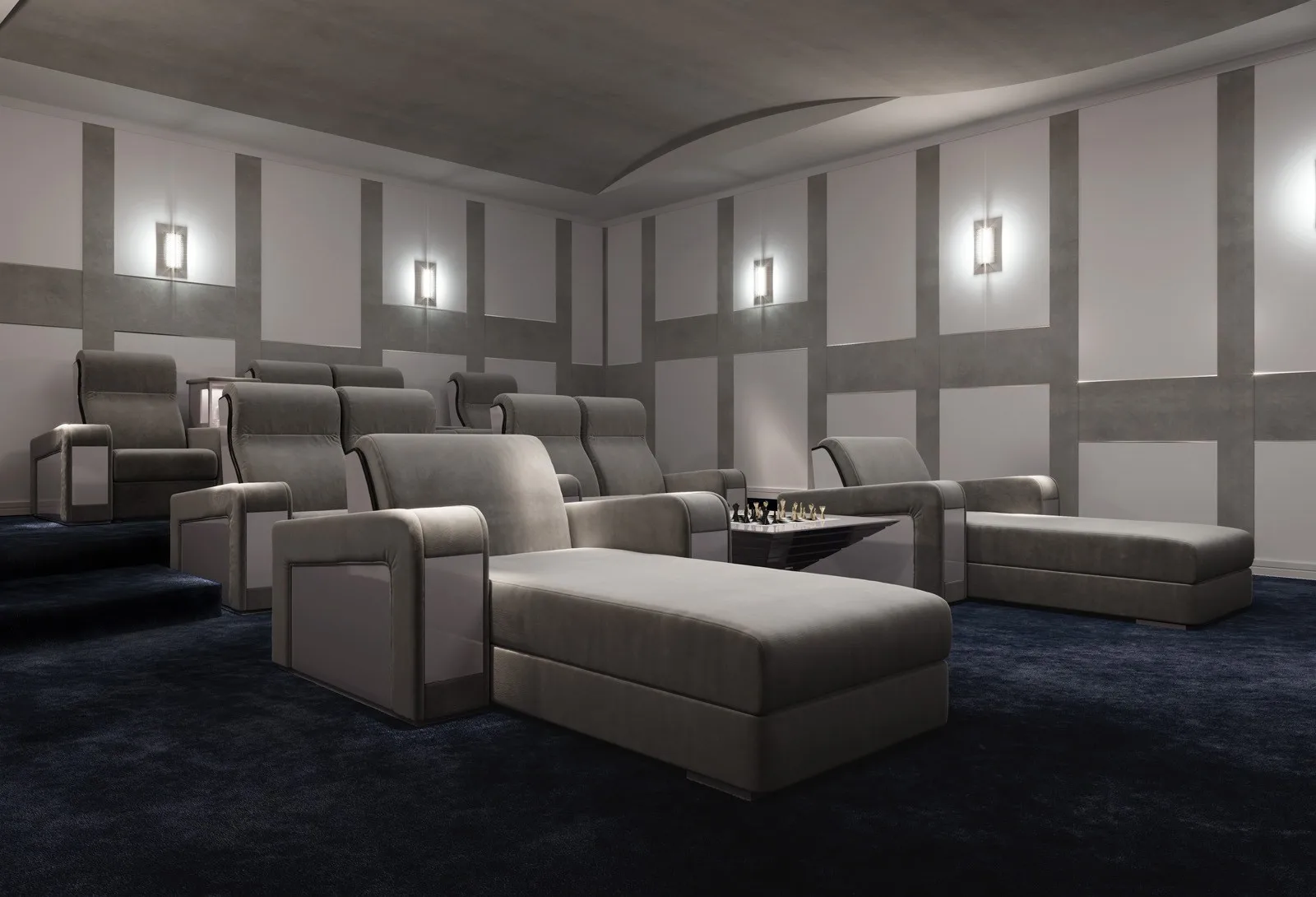 кресло с откидывающейся спинкой Luxor - это кресло для кинотеатра с смелым внешним видом и уникальной индивидуальностью. Его эстетическая особенность заключается в декоративных деталях из лакированного дерева, которые создают неожиданный контраст с набивкой. Кресло Luxor Recliner предназначено для обеспечения максимального комфорта, расслабления и долговечности. Его основные характеристики-высокое качество и прочность откидного механизма. Кресло Luxor оснащено дополнительными держателями охлаждающих стаканов, порты usb, поворотные сенсорные лампы и эксклюзивная панель, которая поднимается из центрального подлокотника. Чтобы создать уникальное пространство, клиент может по желанию составить свой собственный макет, прямой или изогнутый ряд, с отдельными креслами, местами для любви и шезлонгами. Кресла для кинотеатров Luxor могут быть покрыты драгоценной кожей, тканями и тканями, изготовленными по индивидуальному заказу в соответствии с требованиями заказчика.