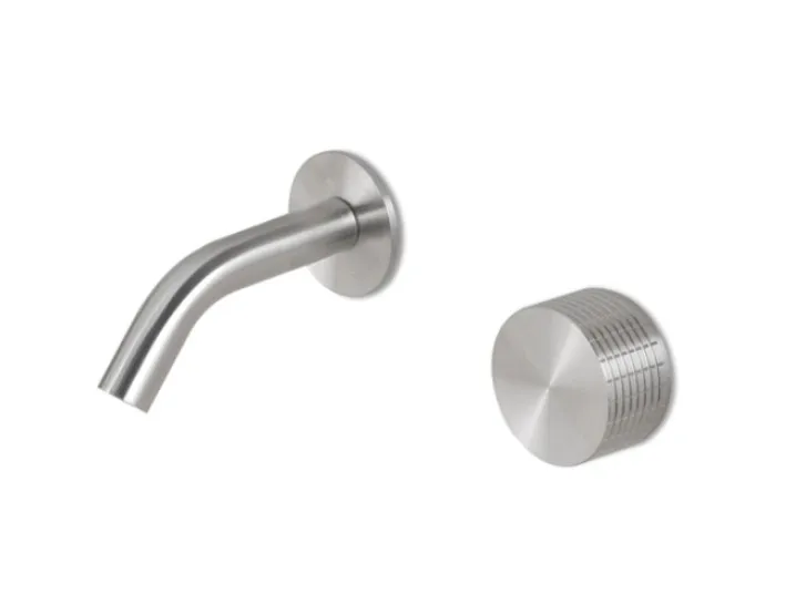 KRONOS KRO140-это настенный смеситель для раковины с 2 отверстиями из нержавеющей стали.новая линия KRONOS дополняет коллекции Linki текстурой, обработанной с низким рельефом на поверхности стали. текстура, помимо того, что является декоративным элементом, увеличивает функциональность, позволяя лучше удерживать ручку.