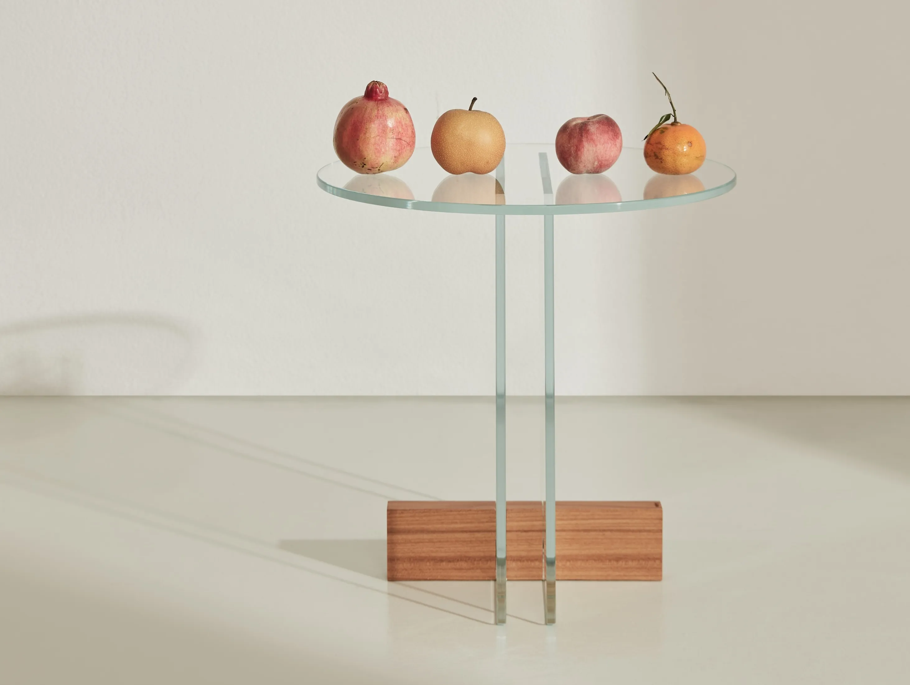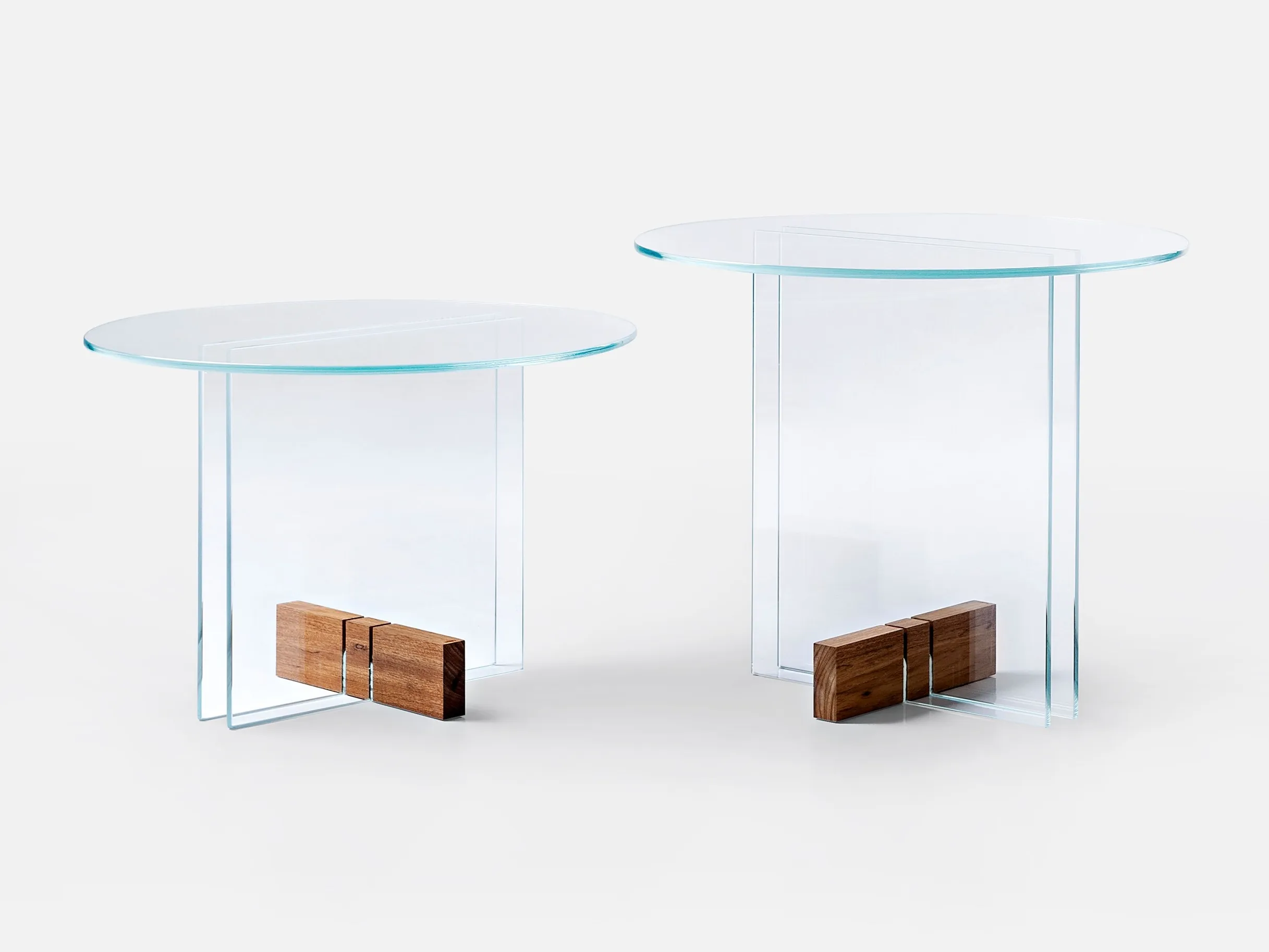 постоянное стремление к легкости в различных формах привело к новому проекту, в котором главным героем является стекло. Тонкие органические формы, исследованные в других продуктах коллекции, уступают место прозрачности " Vidro " (стекло на португальском языке) и основным геометрическим формам. Деревянное основание действует как клин, балансируя стеклянные детали, и подчеркивает действие между элементами на композицию. Контраст между стеклом и деревом-теплый и холодный, натуральный и искусственный – он также исследуется путем поиска баланса между текстурами и значениями каждого материала.