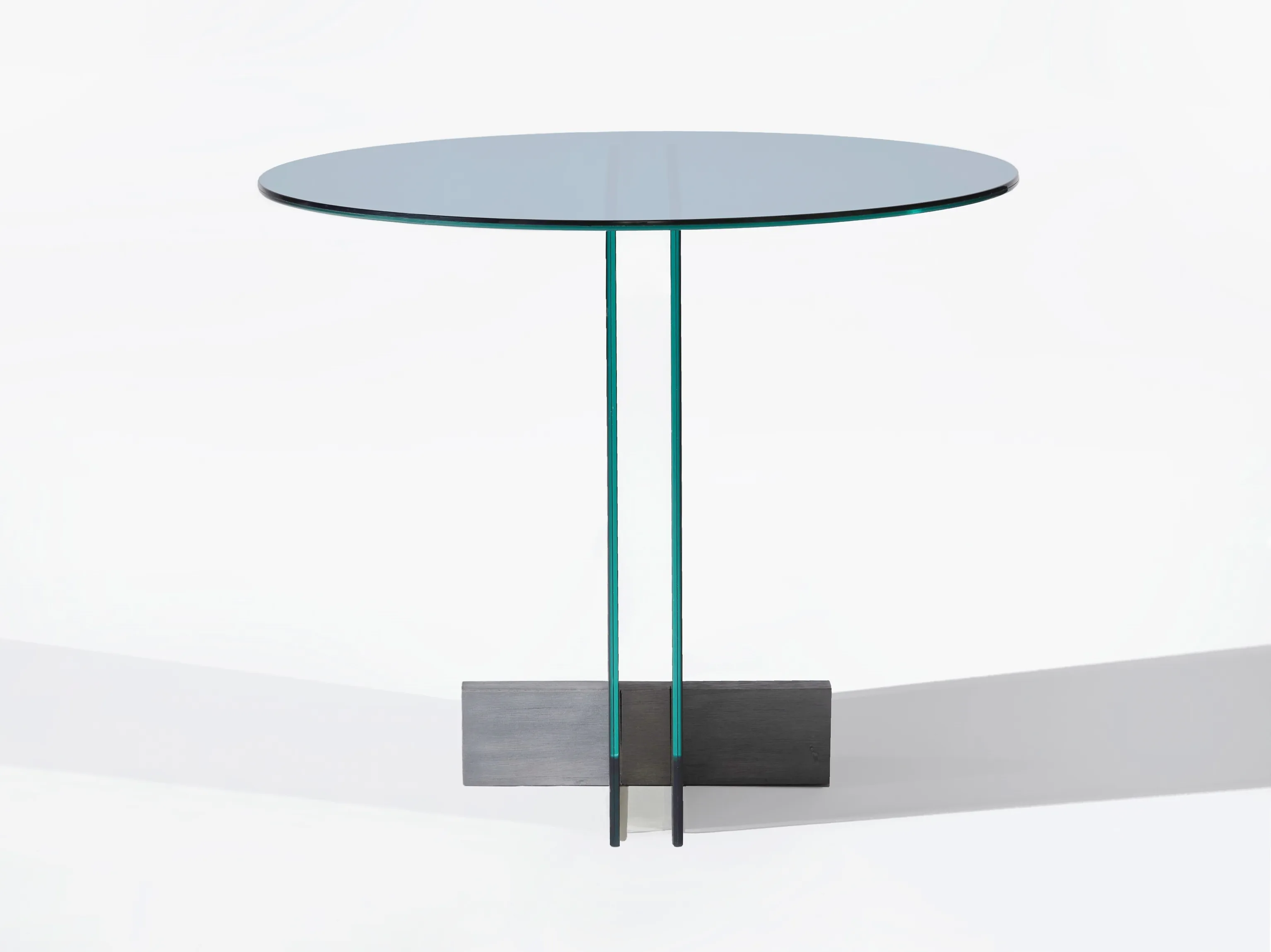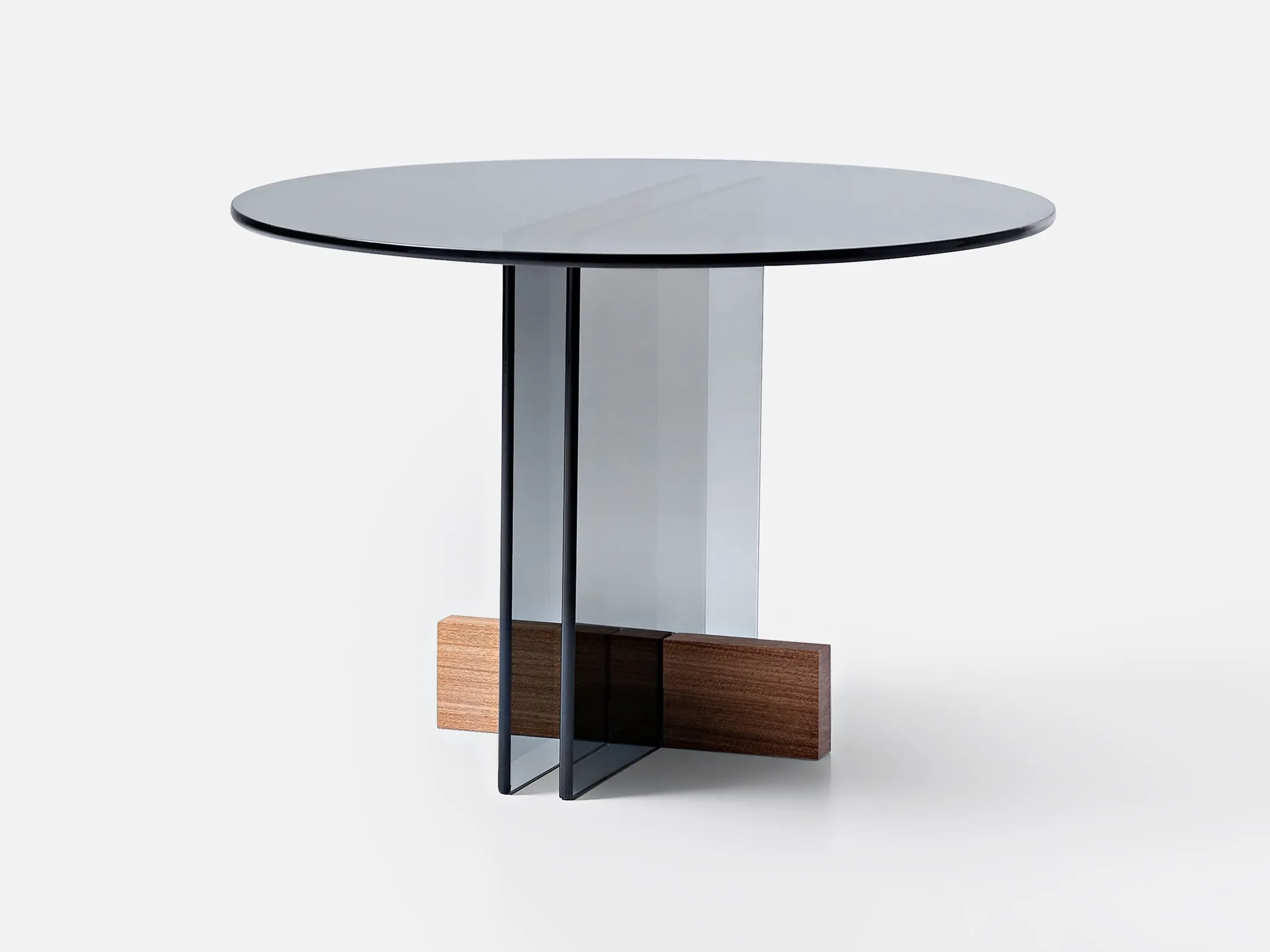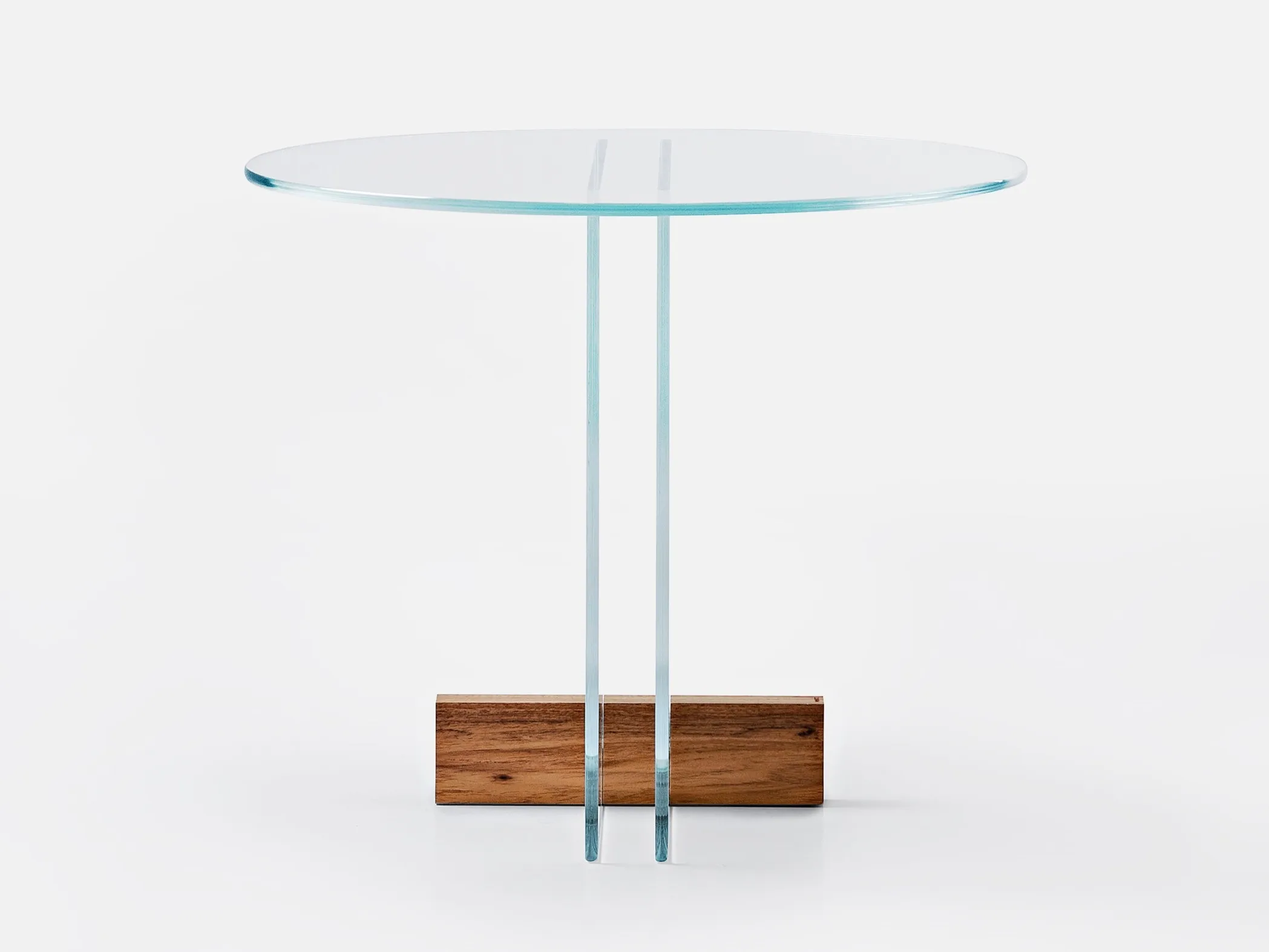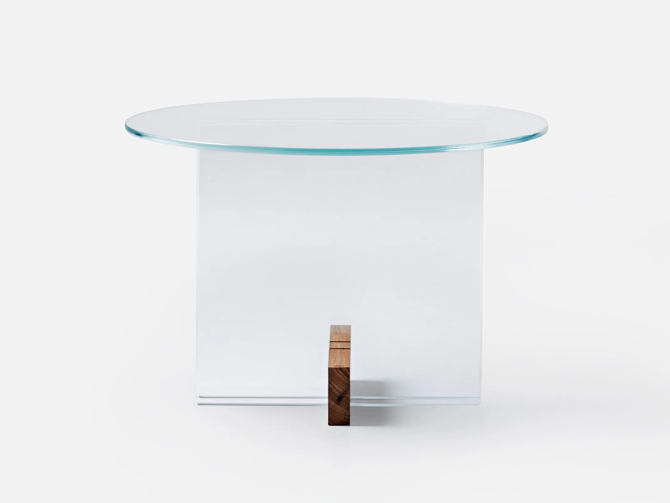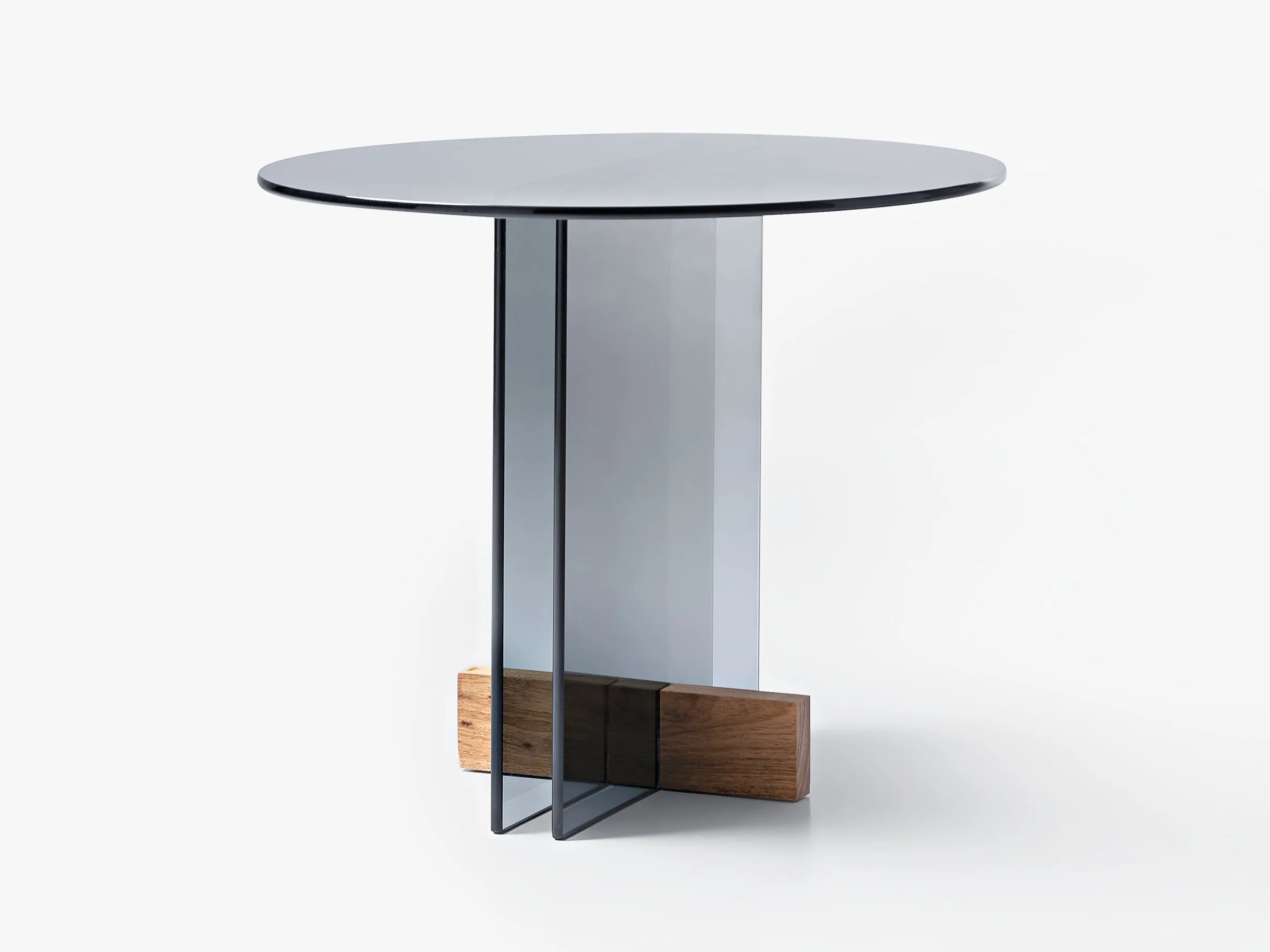 журнальный столик из стеклянной пластины. Основание из массива дерева Freijó с натуральной отделкой (прозрачная и дымчатая версии) или выдержанный эвкалипт (синяя версия).