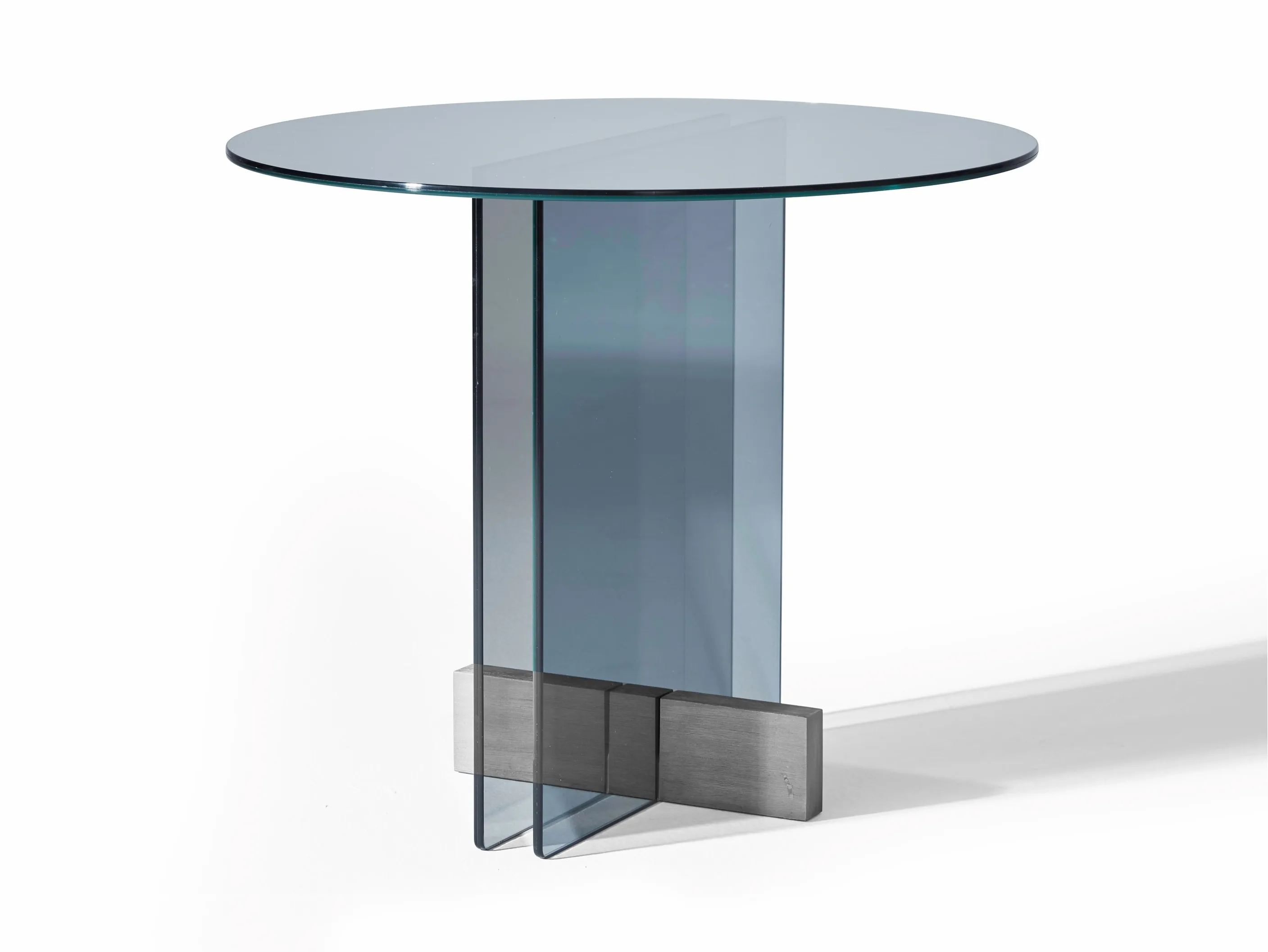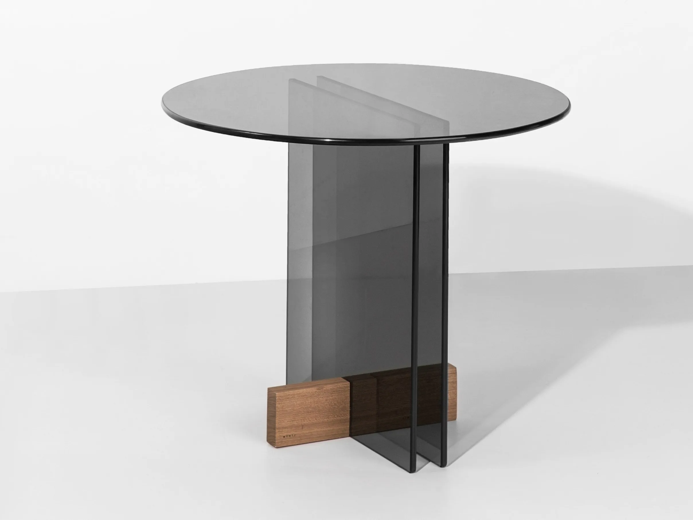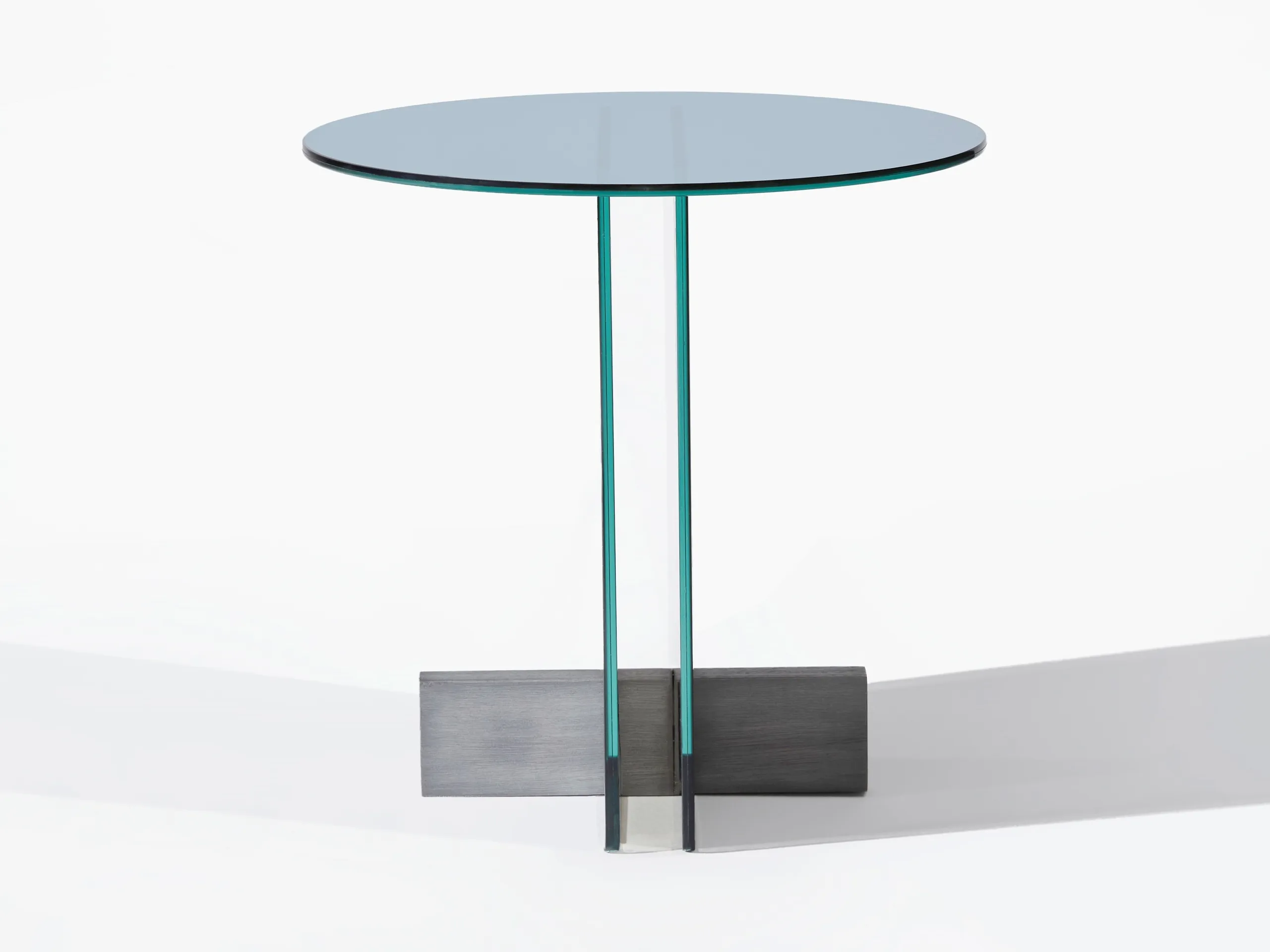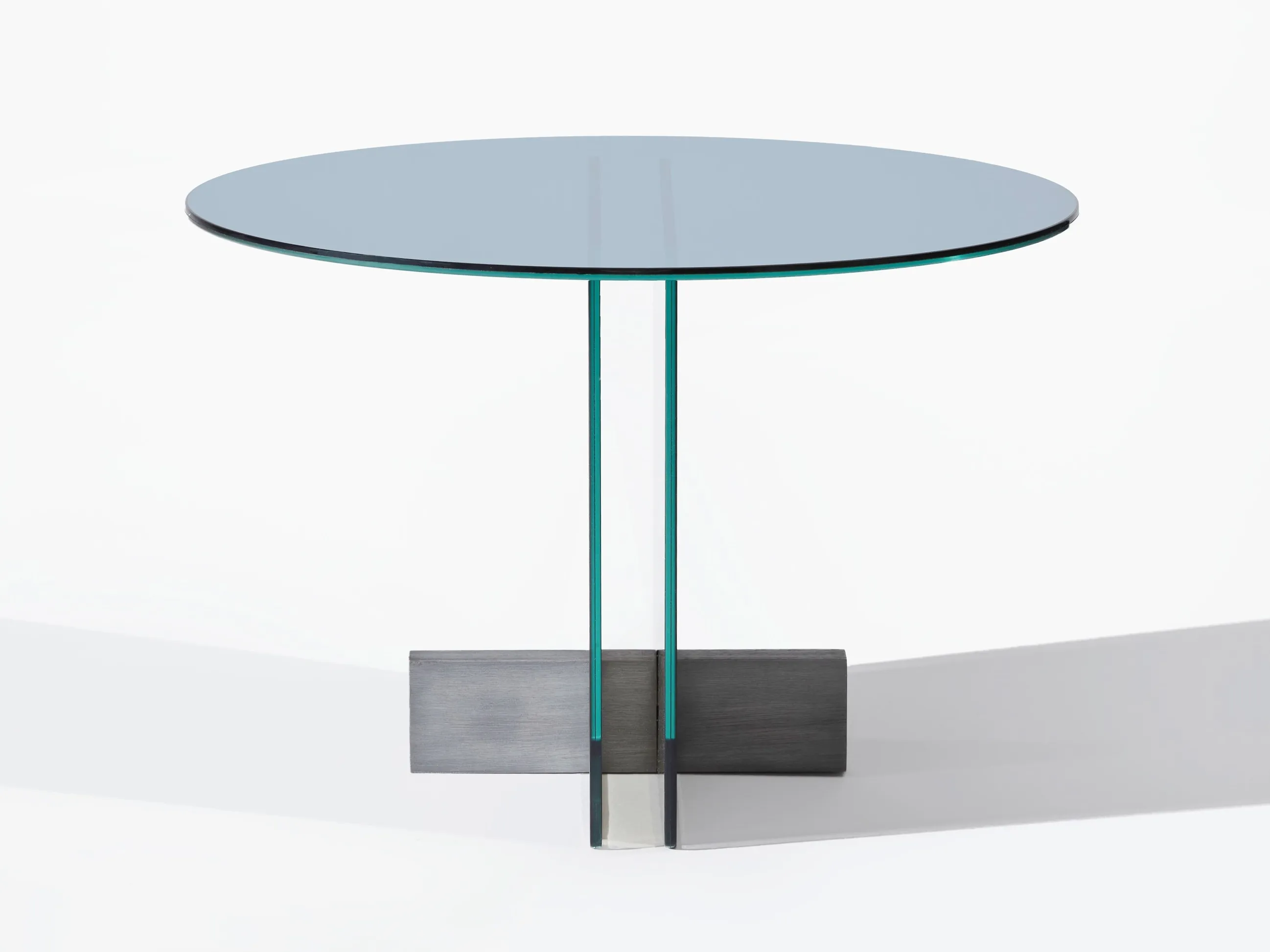 журнальный столик из стеклянной пластины. Основание из массива дерева Freijó с натуральной отделкой (прозрачная и дымчатая версии) или выдержанный эвкалипт (синяя версия).