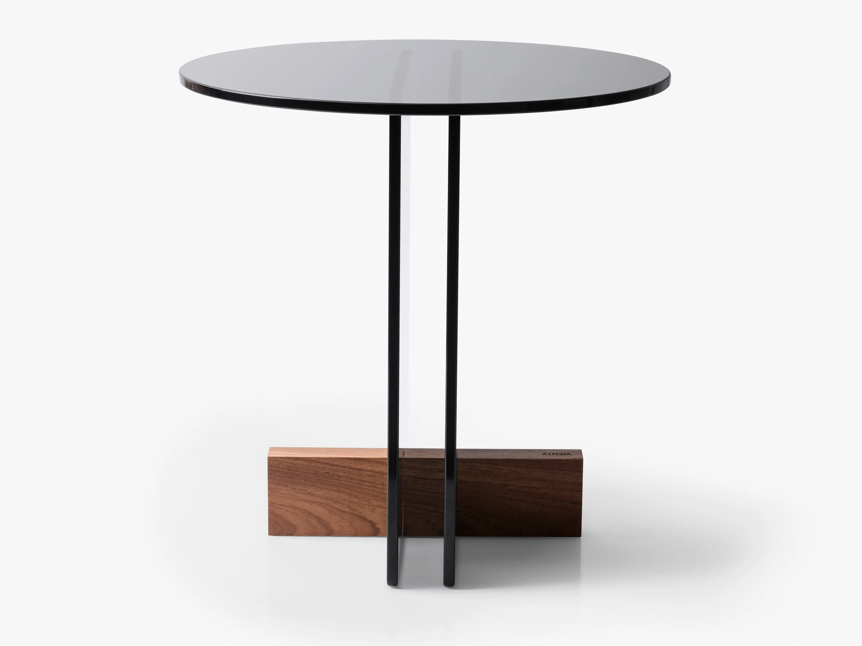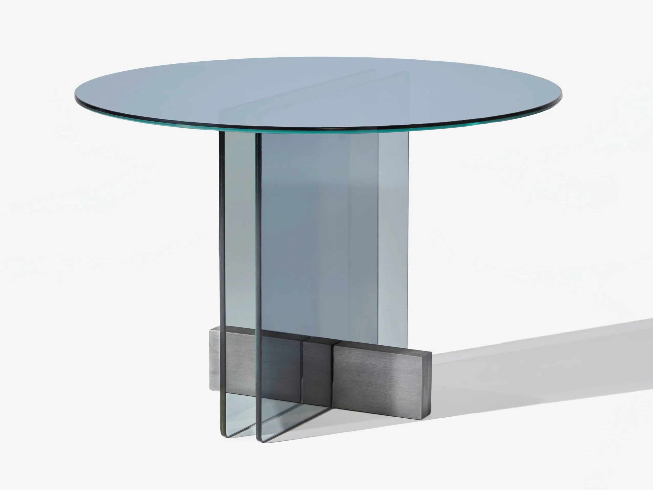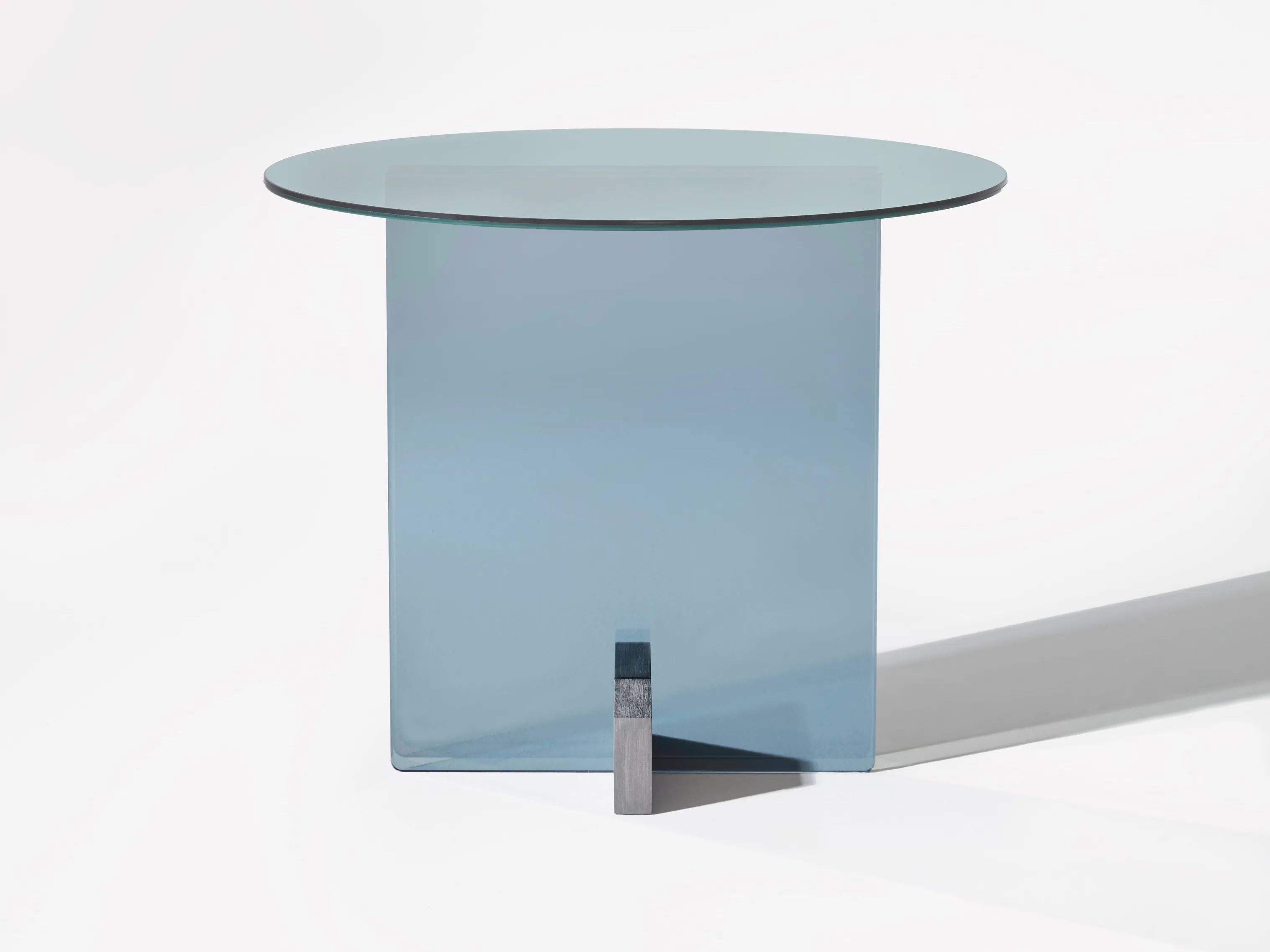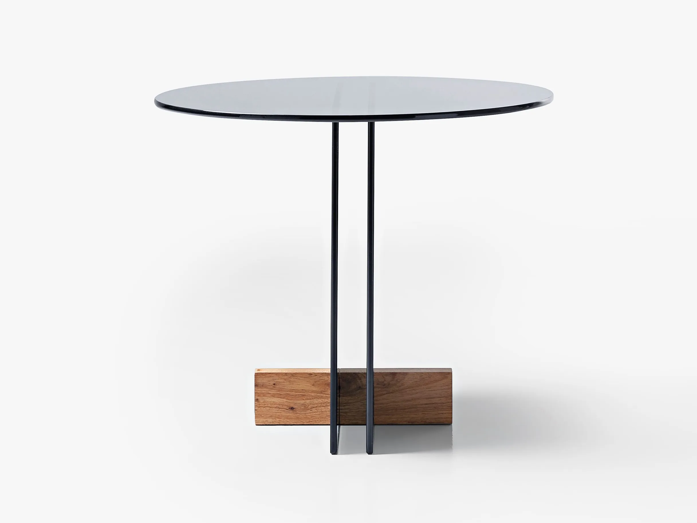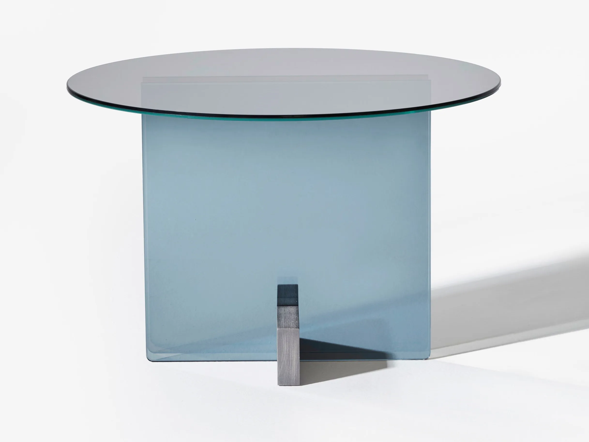 журнальный столик из стеклянной пластины. Основание из массива дерева Freijó с натуральной отделкой (прозрачная и дымчатая версии) или выдержанный эвкалипт (синяя версия).