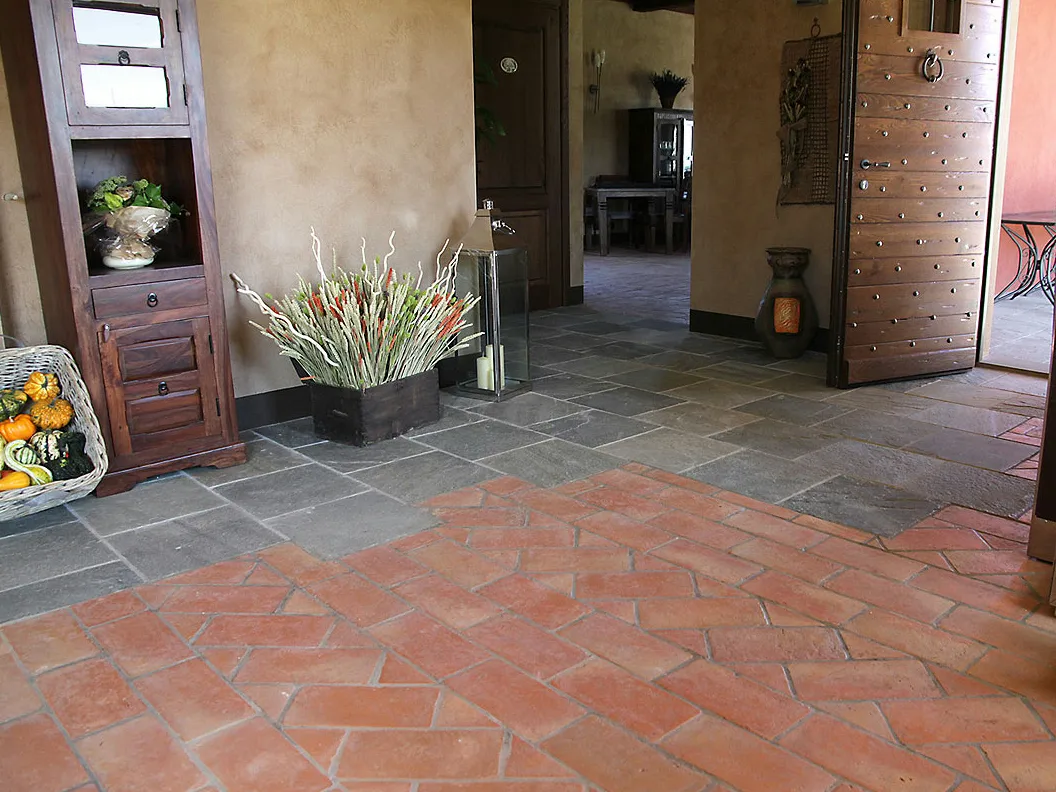 антиквариат, приготовленный вручную - приготовленный с мудростью, искусно приготовленный. Смесь традиций и красоты, покрытие, которое становится предметом мебели: это старинная Котто ручной работы, результат умелого мастерства, которое превращает землю в шедевр, которым можно любоваться навсегда. Благодаря своим оттенкам, которые выражают тепло естественной земли, это идеальный материал в исторических и деревенских условиях, он оказывается оригинальным выбором, даже вставленным в современную атмосферу. Полностью ручное производство и приготовление пищи в дровяных печах придают уникальный вид.
