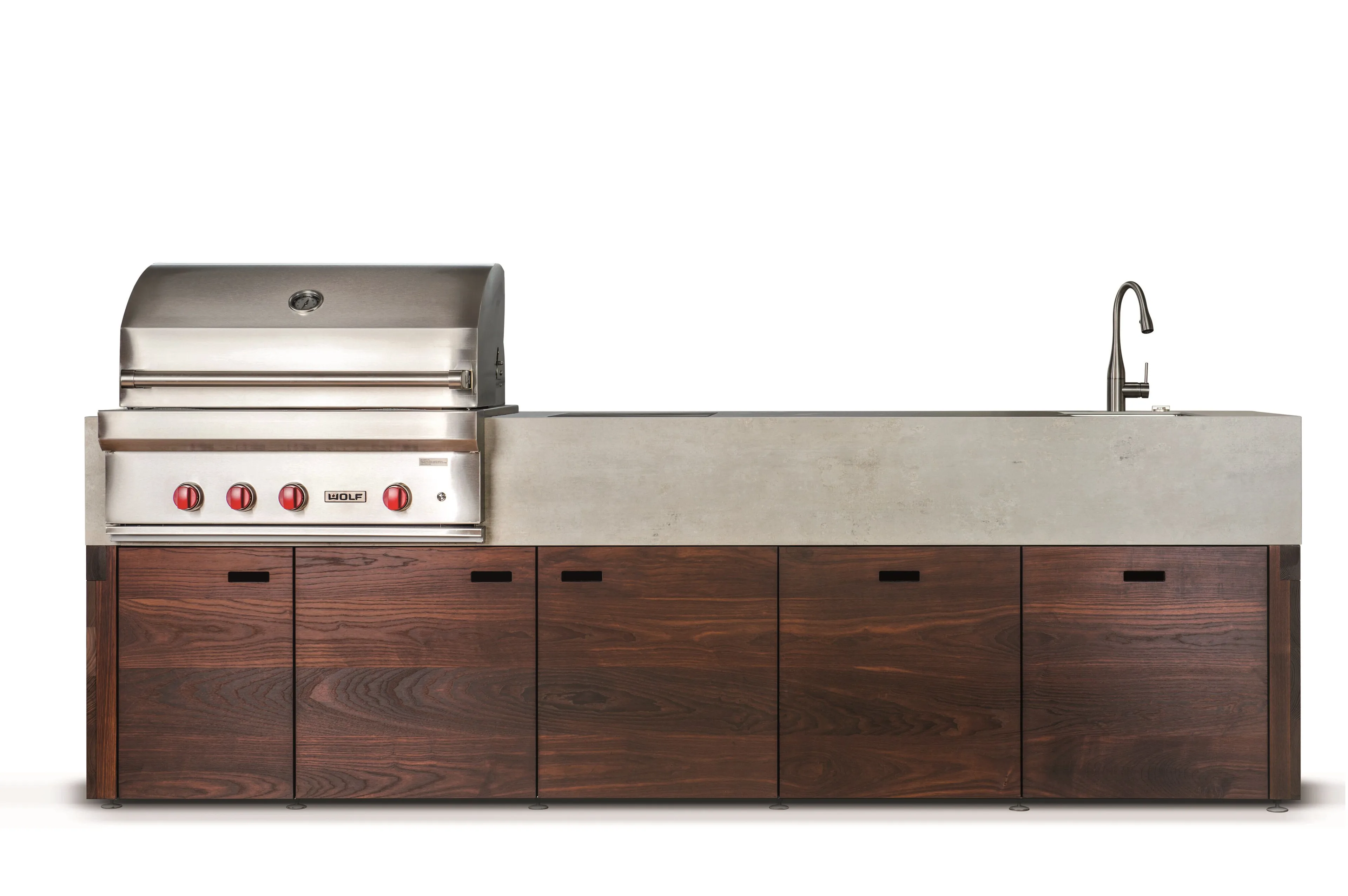 линияBBQube PRO основана на дизайне и выборе материалов BBQube ONE Outdoor Kitchen. Размеры и оборудование разработаны на заказ.