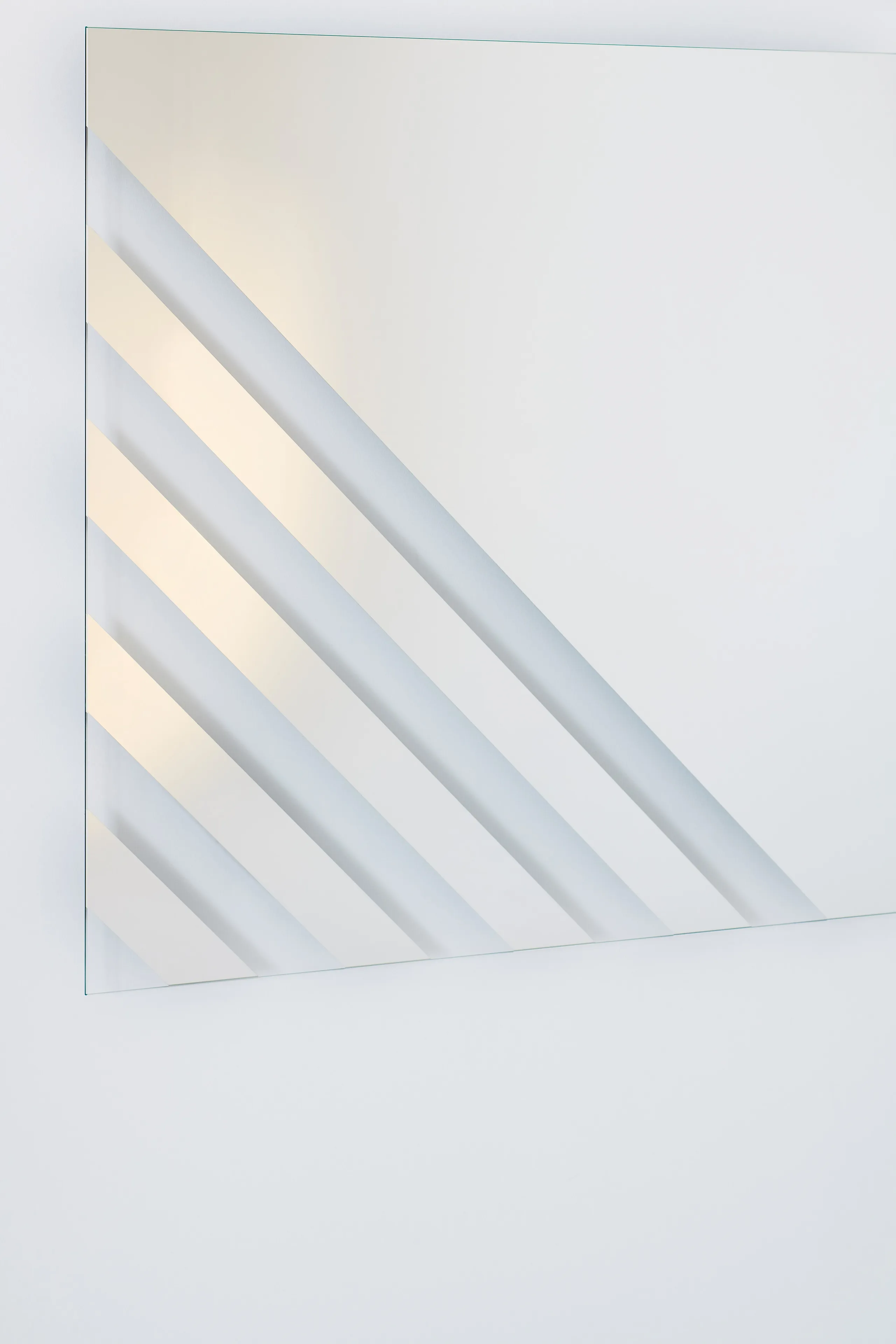 переиздание первой коллекции зеркал, разработанной Нанда Виго для Glas Italia, представленной в 1974 году. это коллекция негативно-положительных зеркал (прозрачные части чередуются с зеркальными частями) различных форм и размеров, доступных в нейтральной отделке или в специальном кристалле янтарного цвета. Система подвешивания позволяет ориентировать детали в разных направлениях.