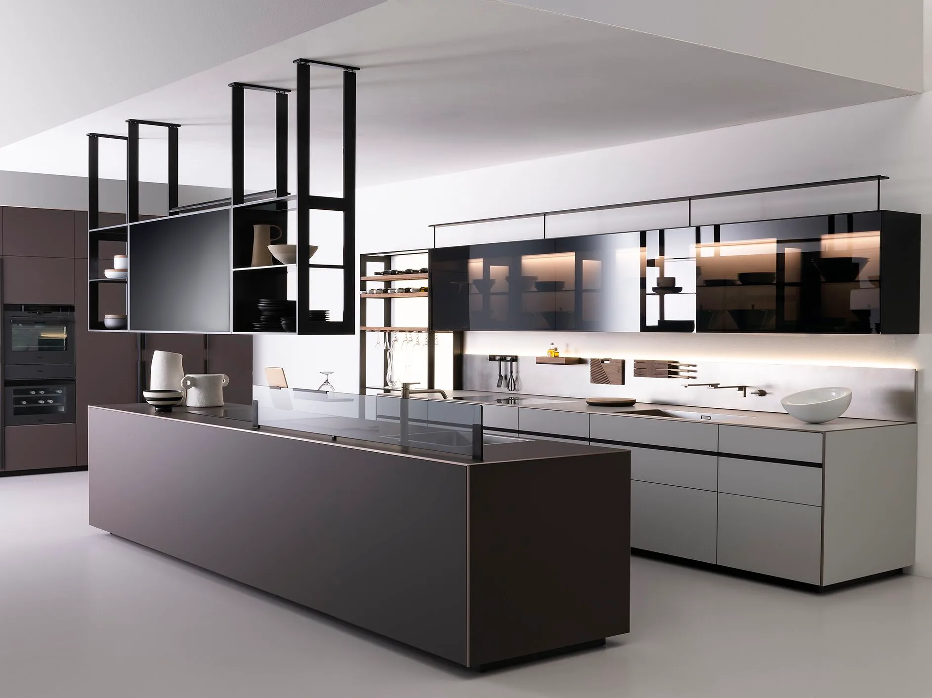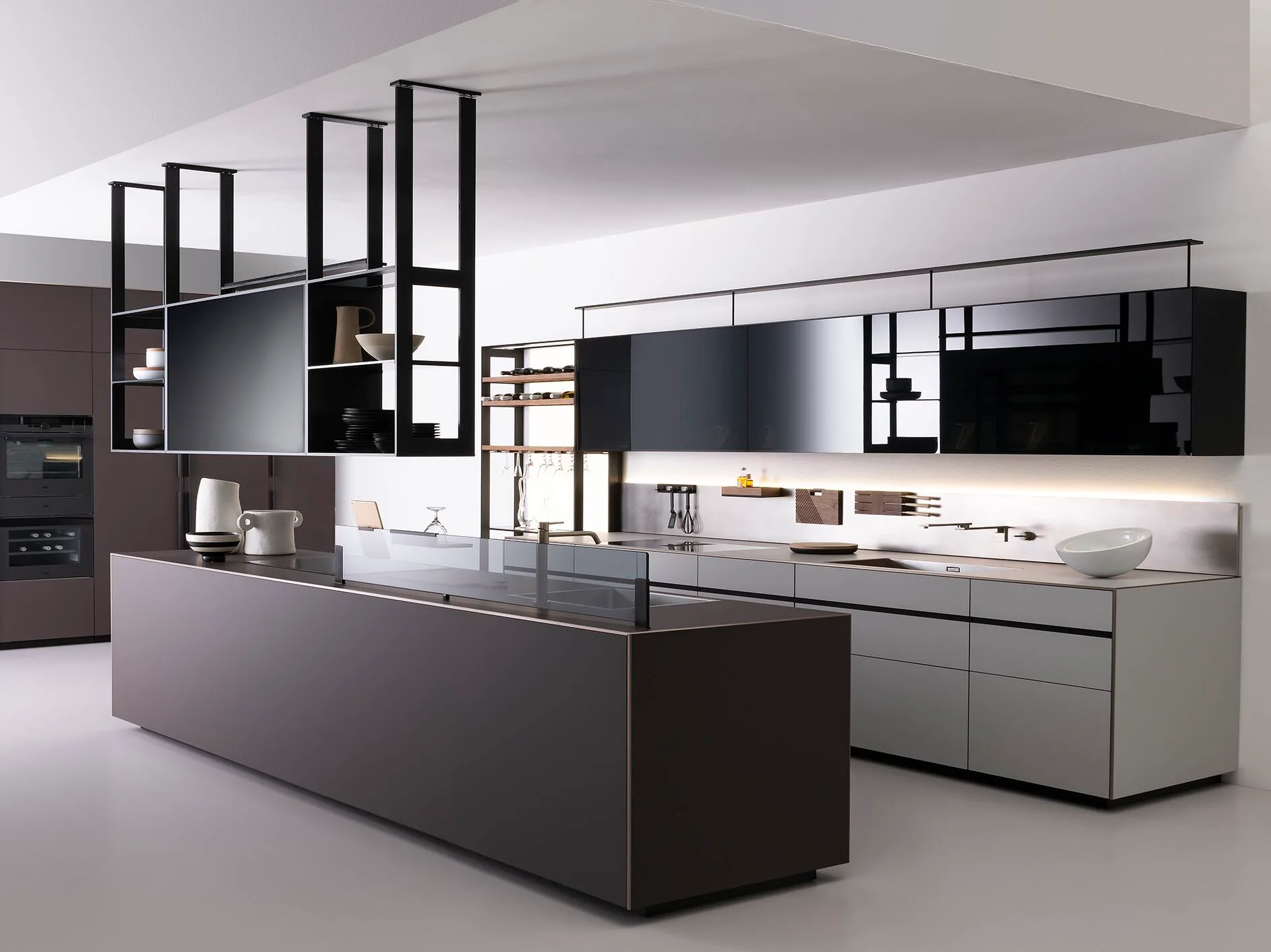 Recyclantica Outline пряный шоколадный ламинат - это встроенная кухня из ламината с островом без ручек. усовершенствованная технология Valcucine, легкий вес Recyclantica и новые функциональные исследования дают жизнь Recyclantica Outline. в этом предложении композиция представлена основаниями, верхами и колоннами из шелкового ламината серого цвета; верхняя спинка выполнена из нержавеющей стали. По краям кухни проходит напряженный линейный профиль, становится отличительным элементом композиции. Формальное ...