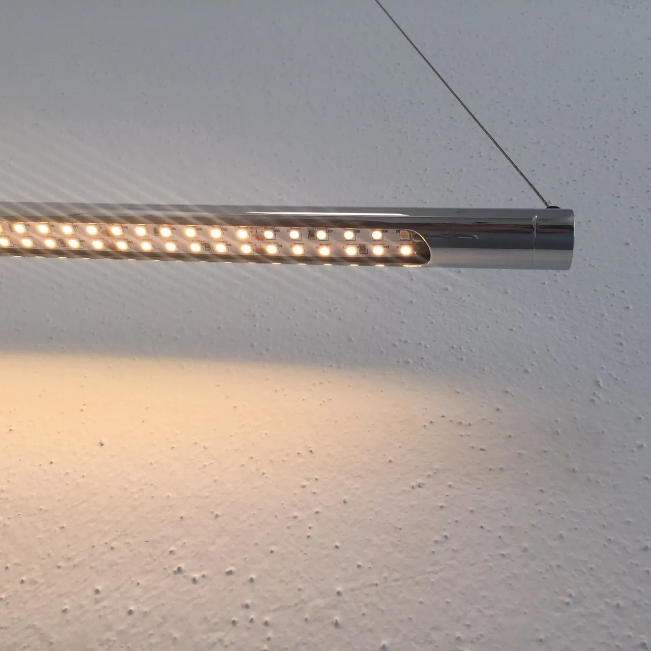 полная лампа с потолочным креплением, электронным светодиодным балластом и сенсорным диммером. Стандартные подвесные кабели для потолка 3,10 метра.