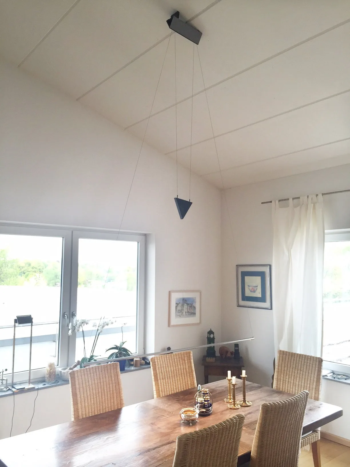 благодаря двум текущим подвесным кабелям свет можно регулировать по высоте.