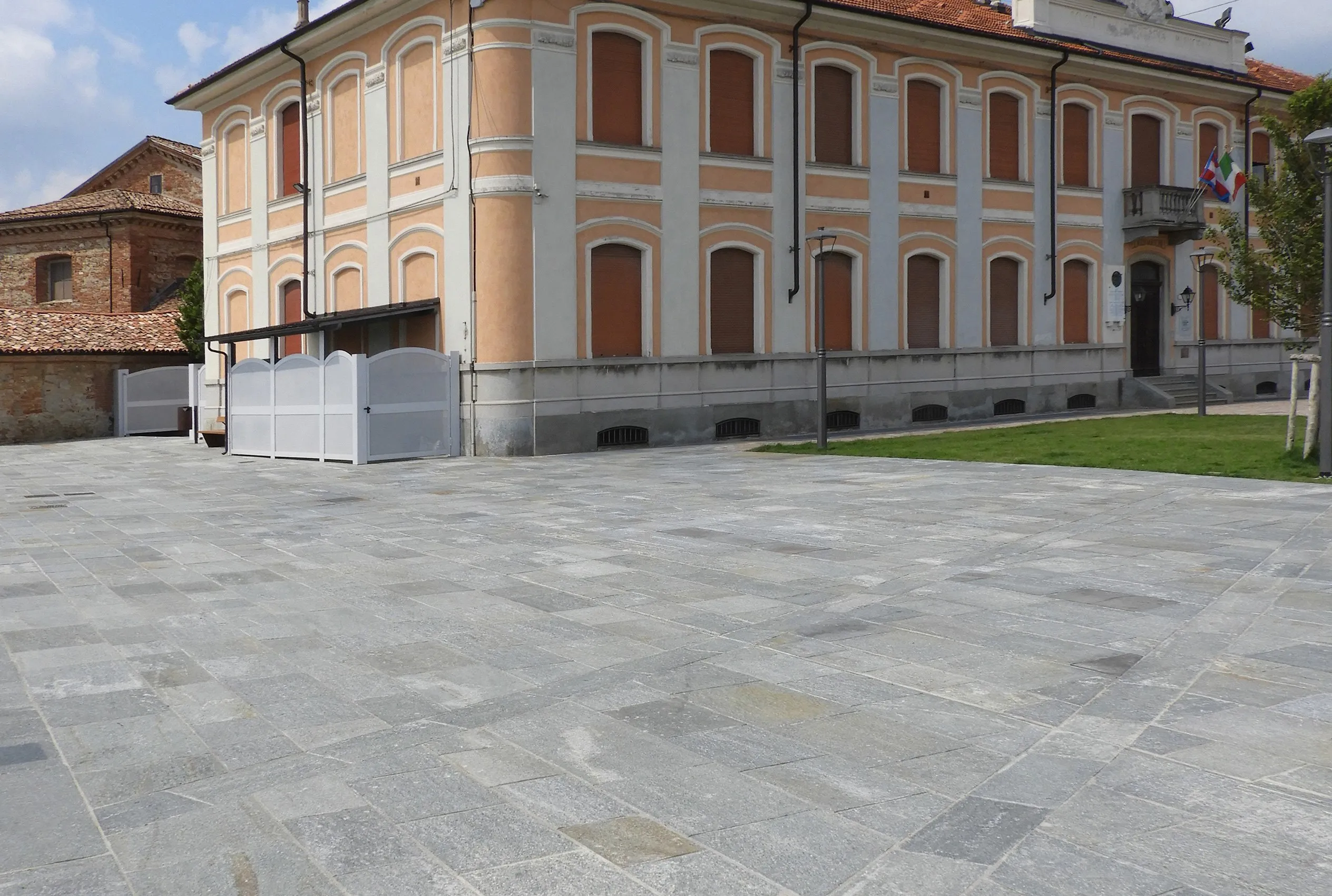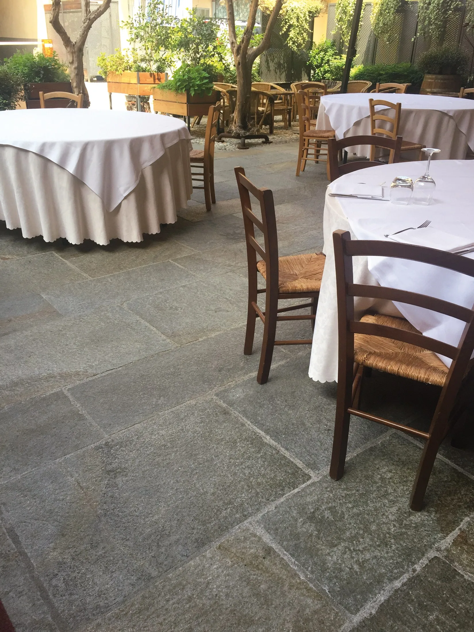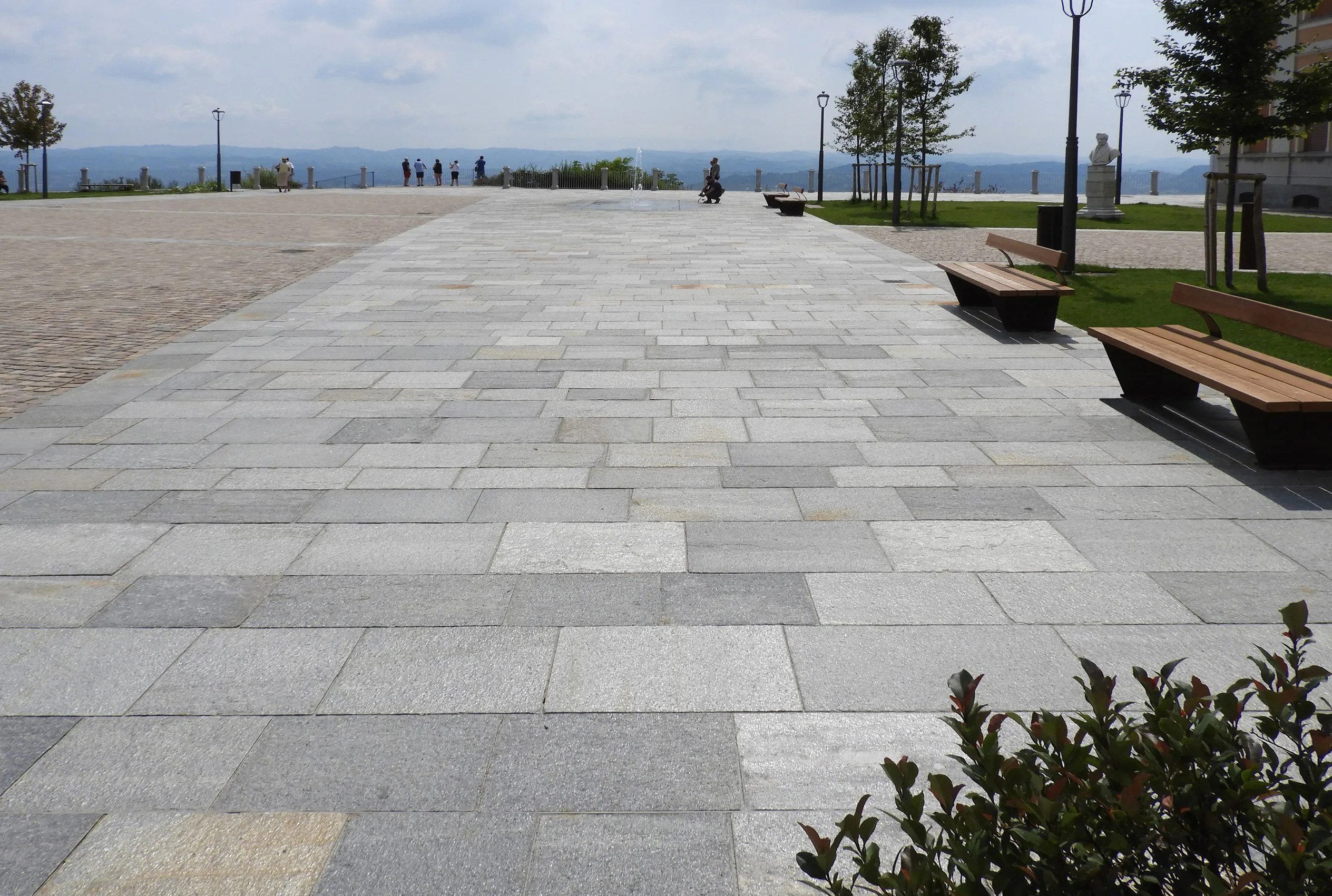 камень гнейс для брусчатки толщиной от 2 до 4 см, с естественной плоской поверхностью и забитыми краями, которые придают изделию античный вид.