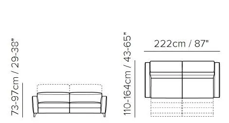 222 x 110/164 x В 73/97 см