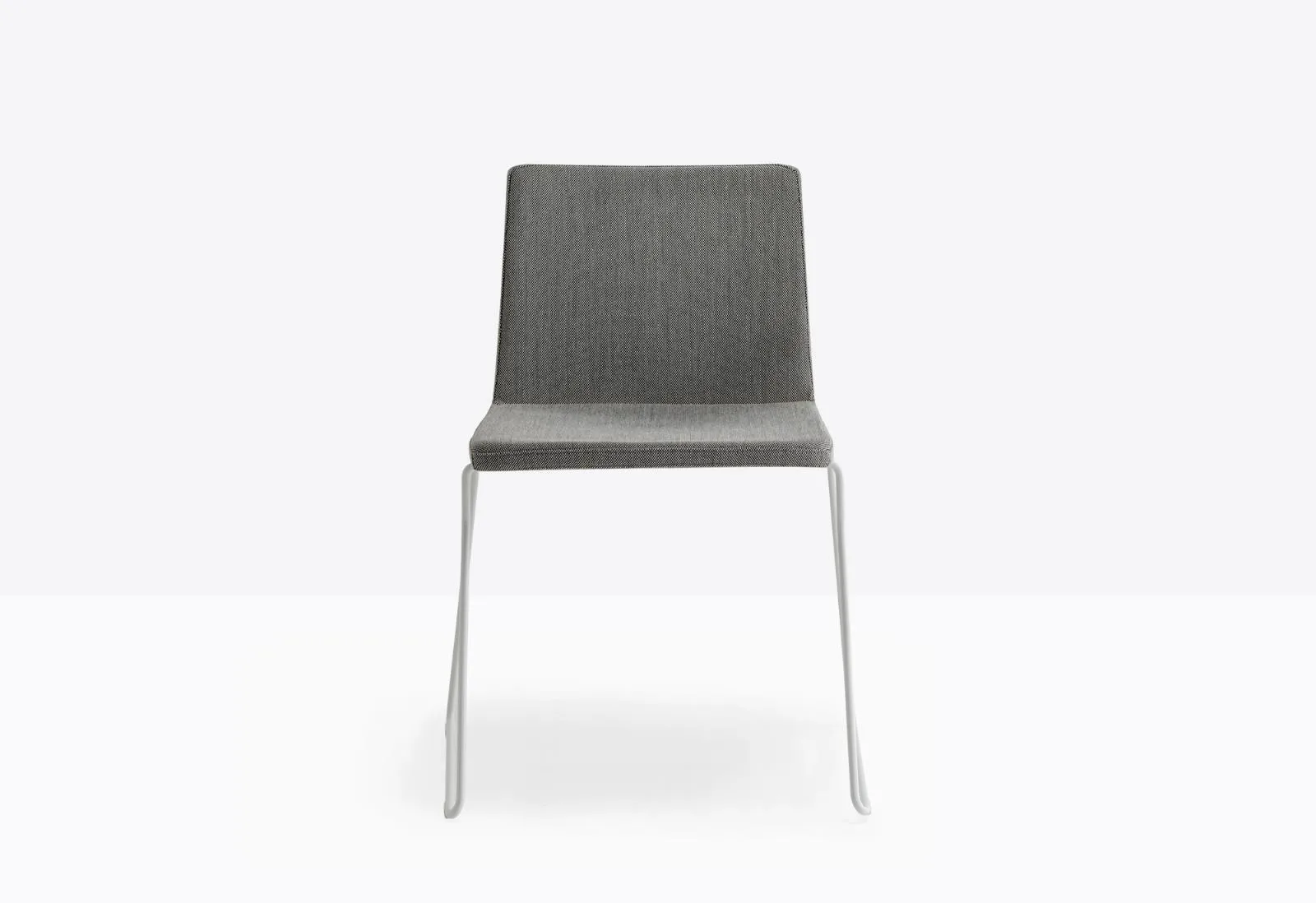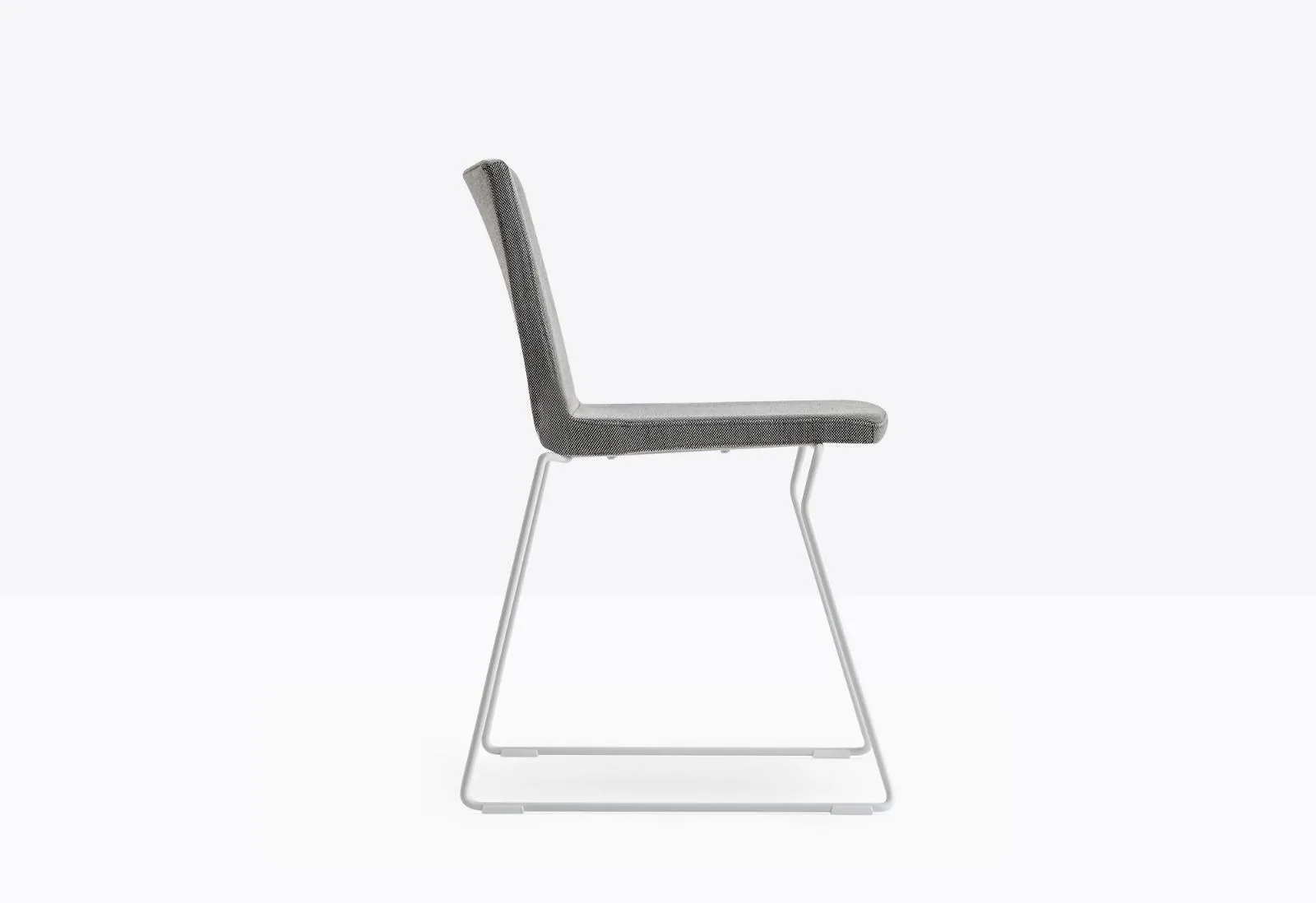 стул Osaka Metal с мягкой оболочкой, обитой тканью или кожей, и структурой салазок из стального стержня Ø 11 мм.