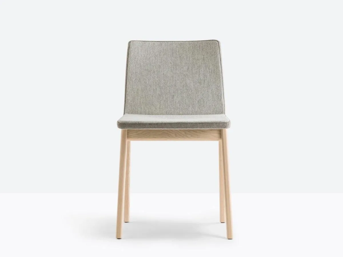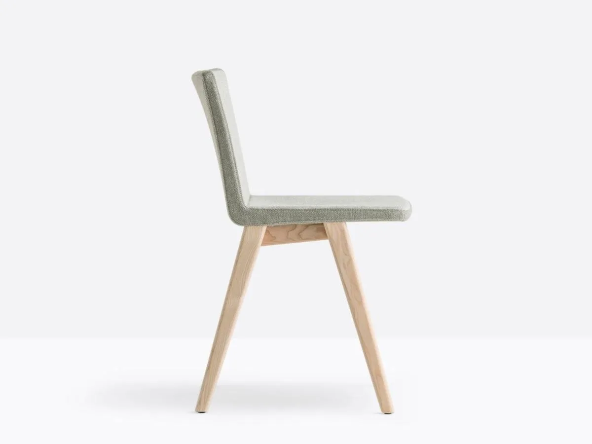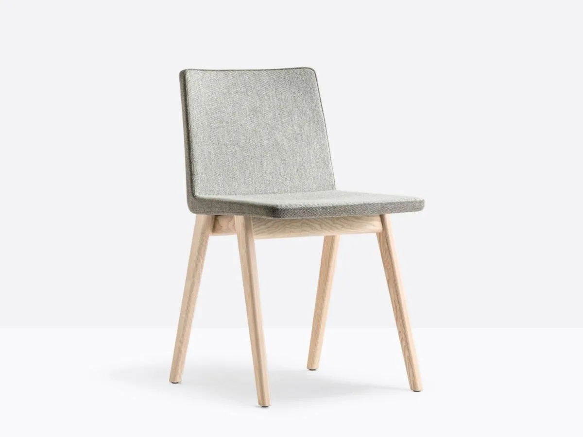 стул с мягкой оболочкой, обитой тканью или кожей и структурой из массива ясеня.