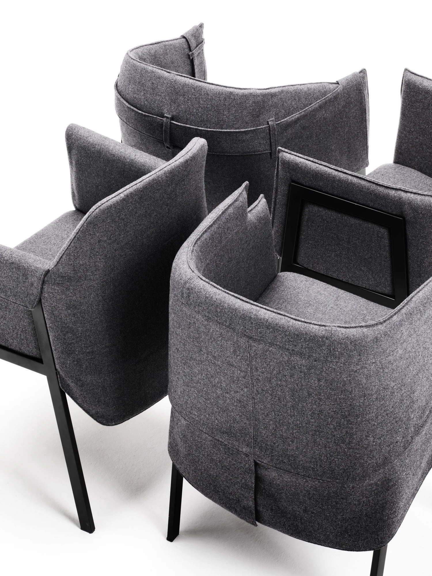 монококовая конструкция со стальной вставкой и прокладкой из холодного вспененного полиуретана. Рама сиденья из многослойного изогнутого тополя и обивка из пенополиуретана.<бром/> Подкладка из 100% полиэстера в сочетании с подложкой из термофиксированного полиамидного бархата. Индивидуальное покрытие для каждого стула, сделанное из ткани или кожи, полностью снимается с помощью молнии и липучки, снимая корпус.