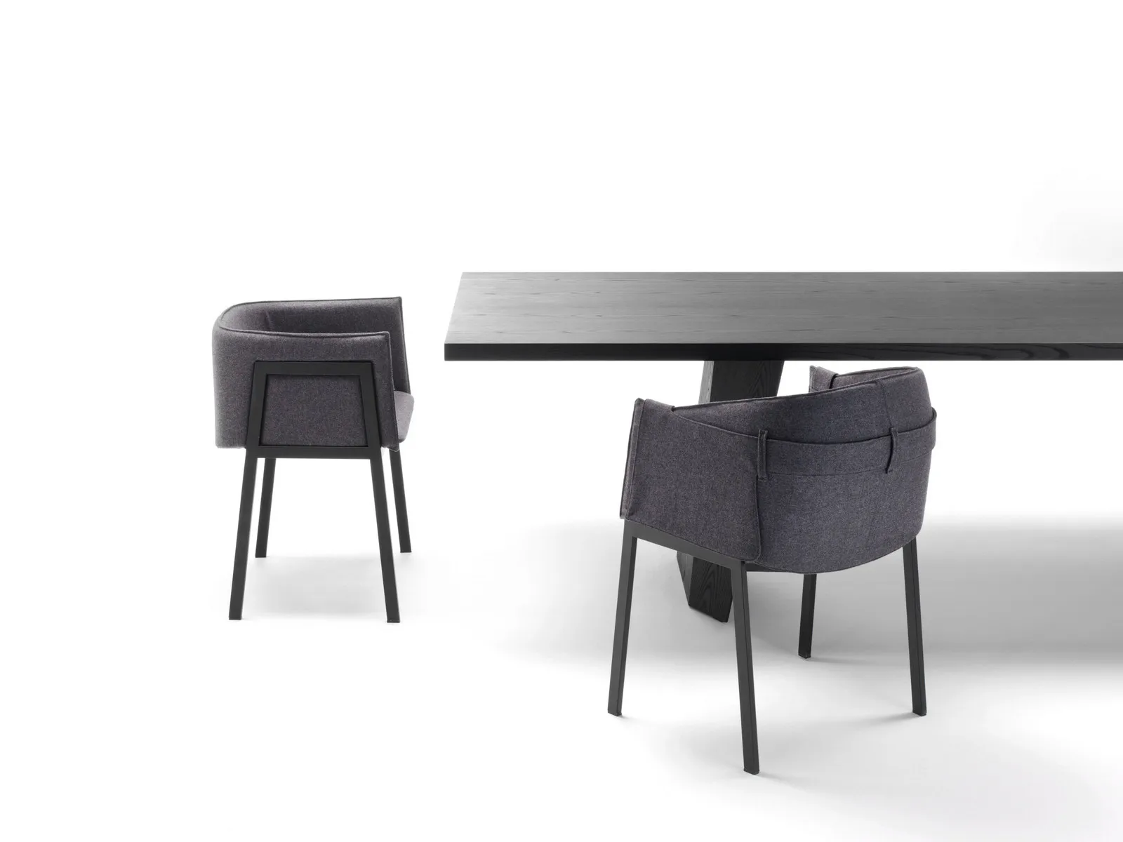 GRACE COLLECTION – это семейство из 4 стульев с несущей основой из прямоугольной трубчатой стали с эпоксидным порошковым покрытием RAL-K7 9017 матовый черный.